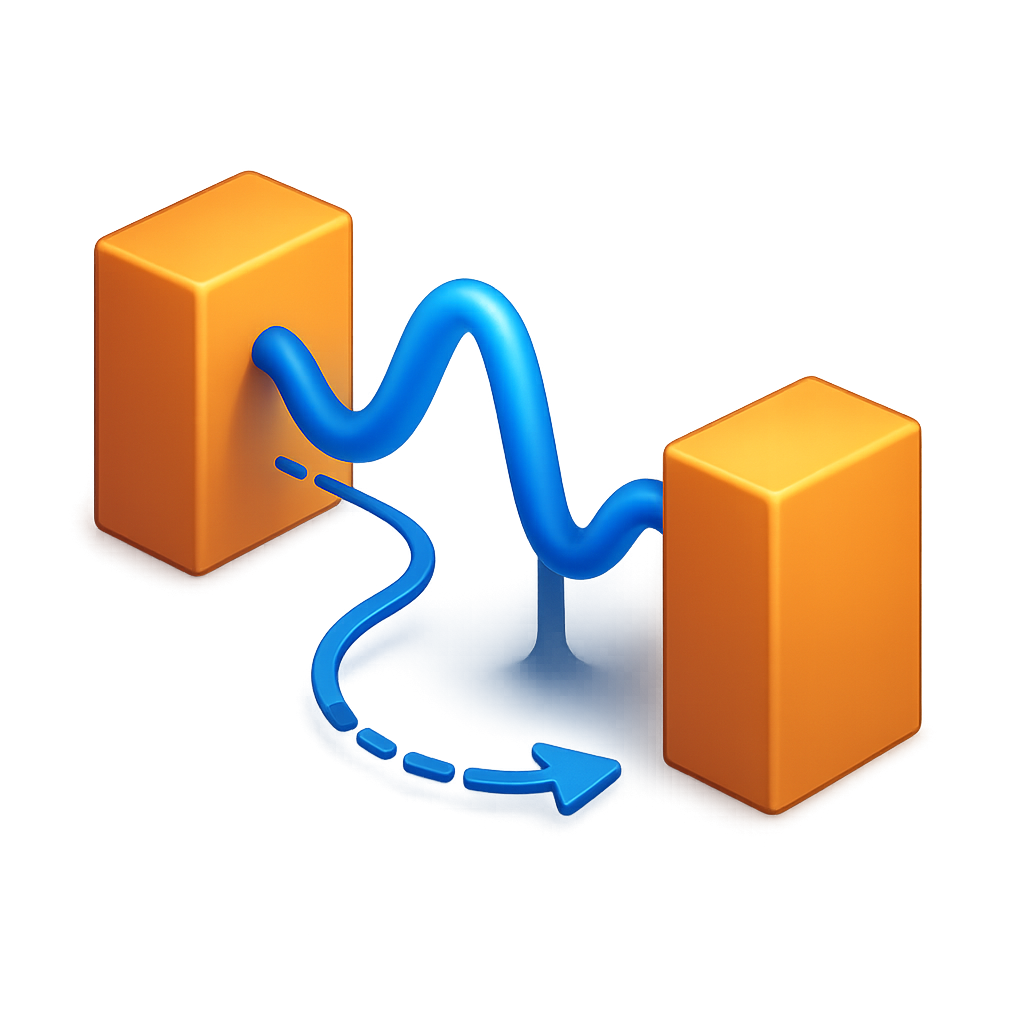 /Collection: /by davooda/Type: PNG/A visually striking 3D icon representing the quantum tunneling effect, featuring two orange blocks with a blue wavy line symbolizing the tunneling path between them.