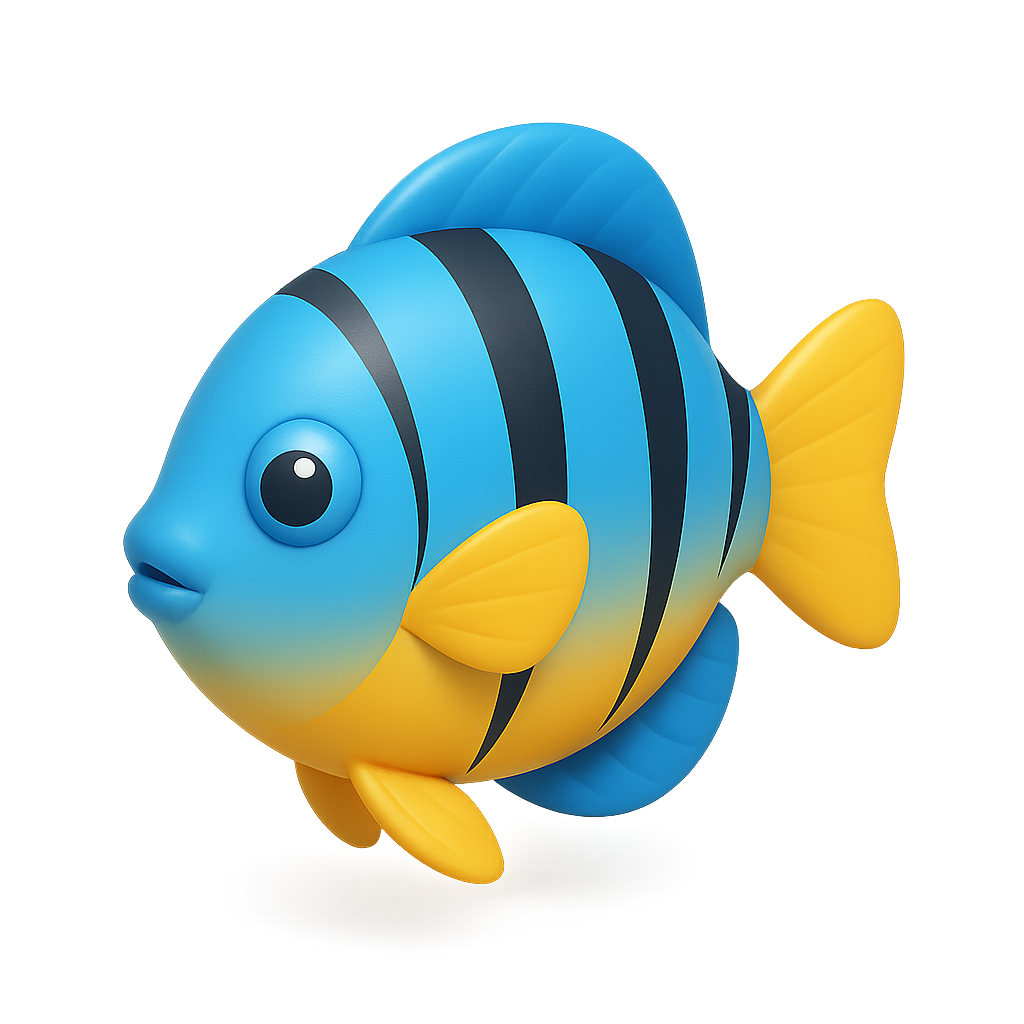 Vibrant 3D Tropical Fish Icon with Isometric View