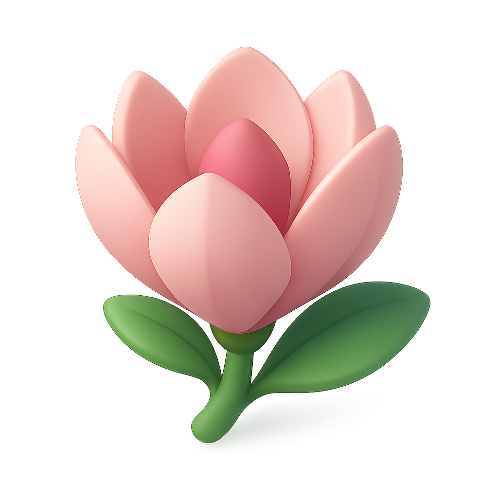 Stylized 3D Magnolia Flower Icon in Soft Colors