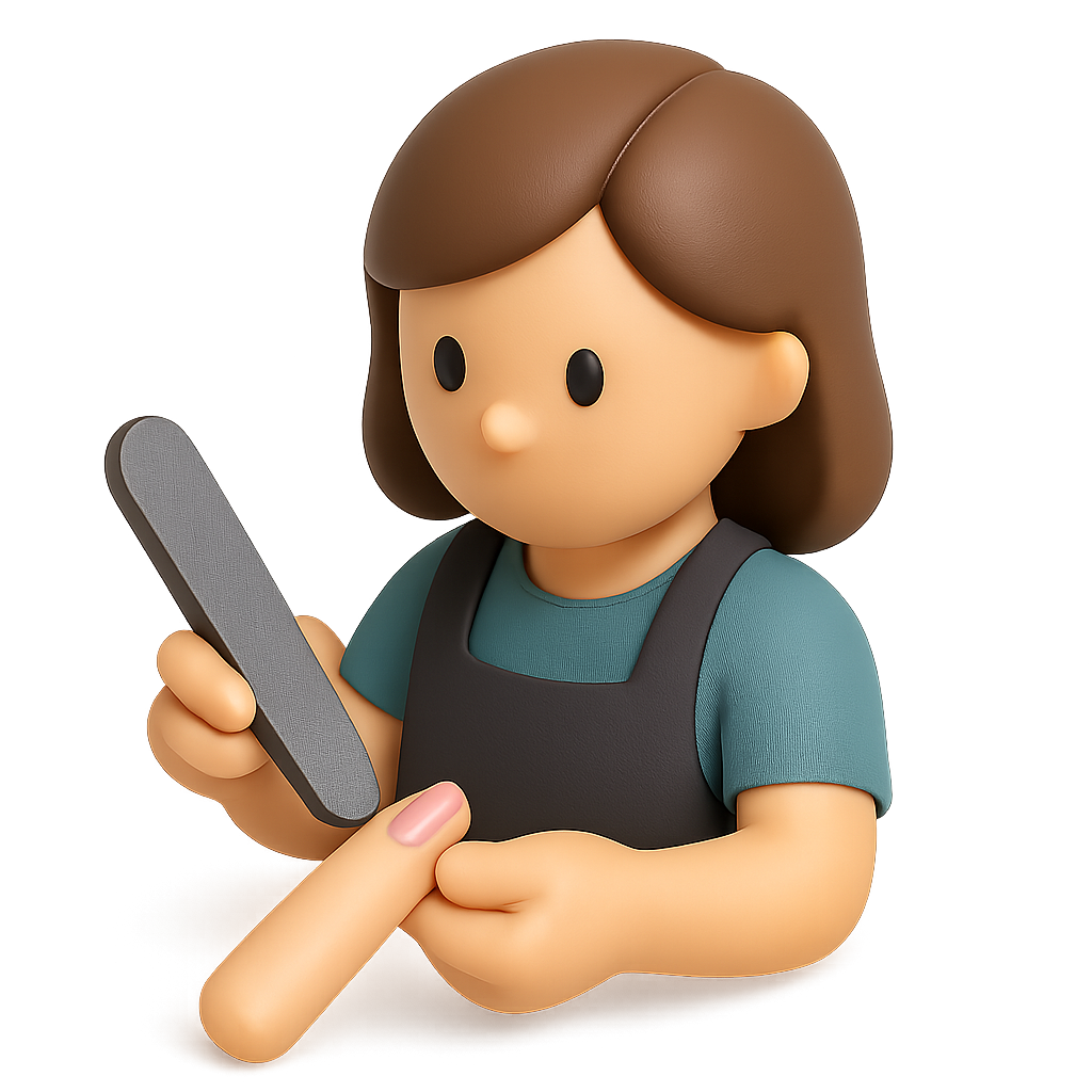 A stylized 3D icon of a nail technician holding a file, featuring a three-quarter view with a transparent background, creating a modern and volumetric effect.