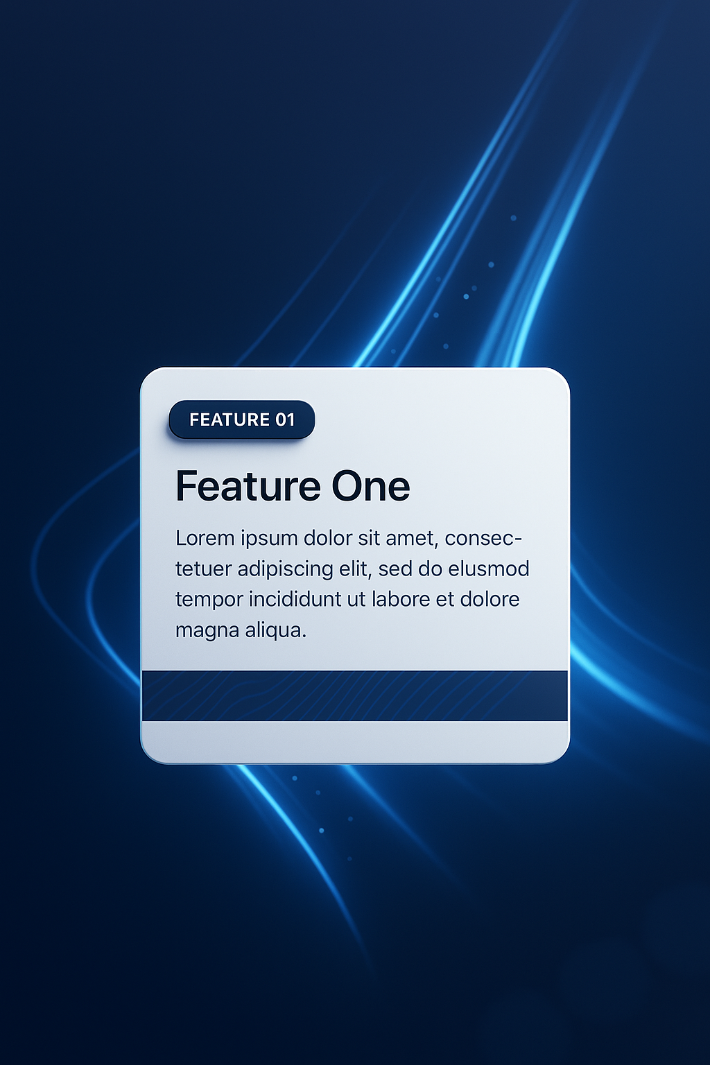 /Collection: /by davooda/Type: PNG/This image features elegant blue light lines on a dark background, creating a sophisticated atmosphere. The design includes a framed text block with feature details, enhancing its modern aesthetic.
