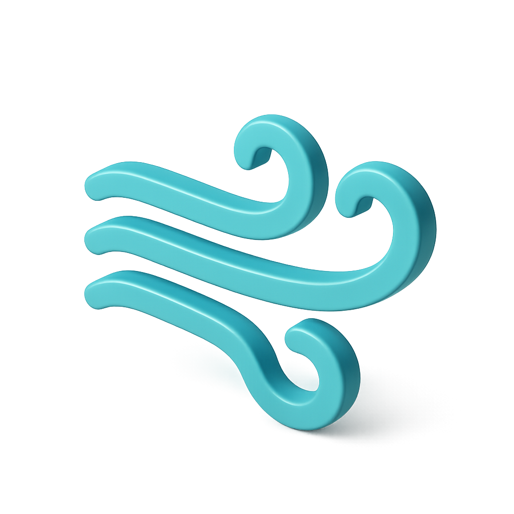 Stylized 3D Icon of Wavy Winds with Isometric Perspective