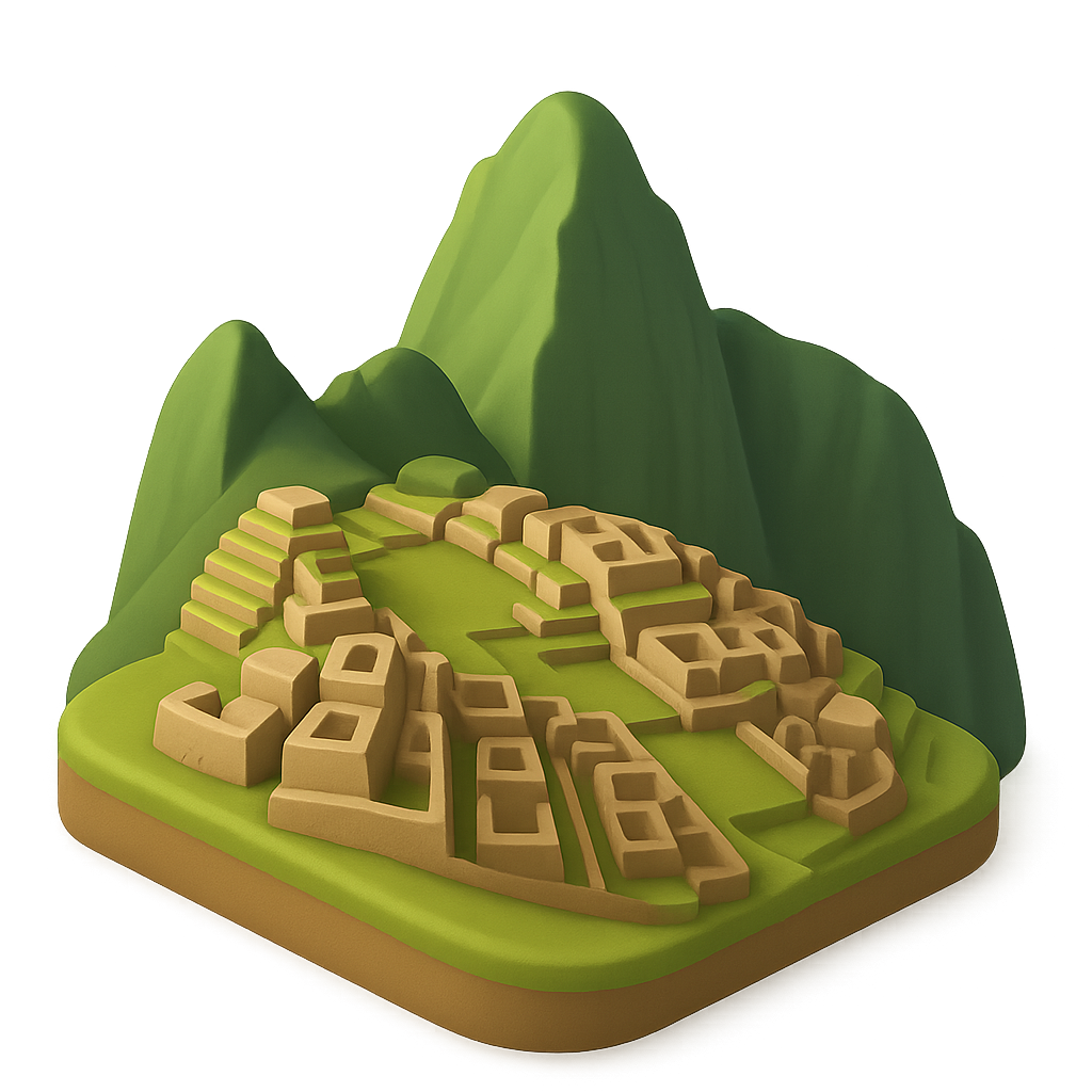 Stylized 3D Icon of Machu Picchu in Isometric View