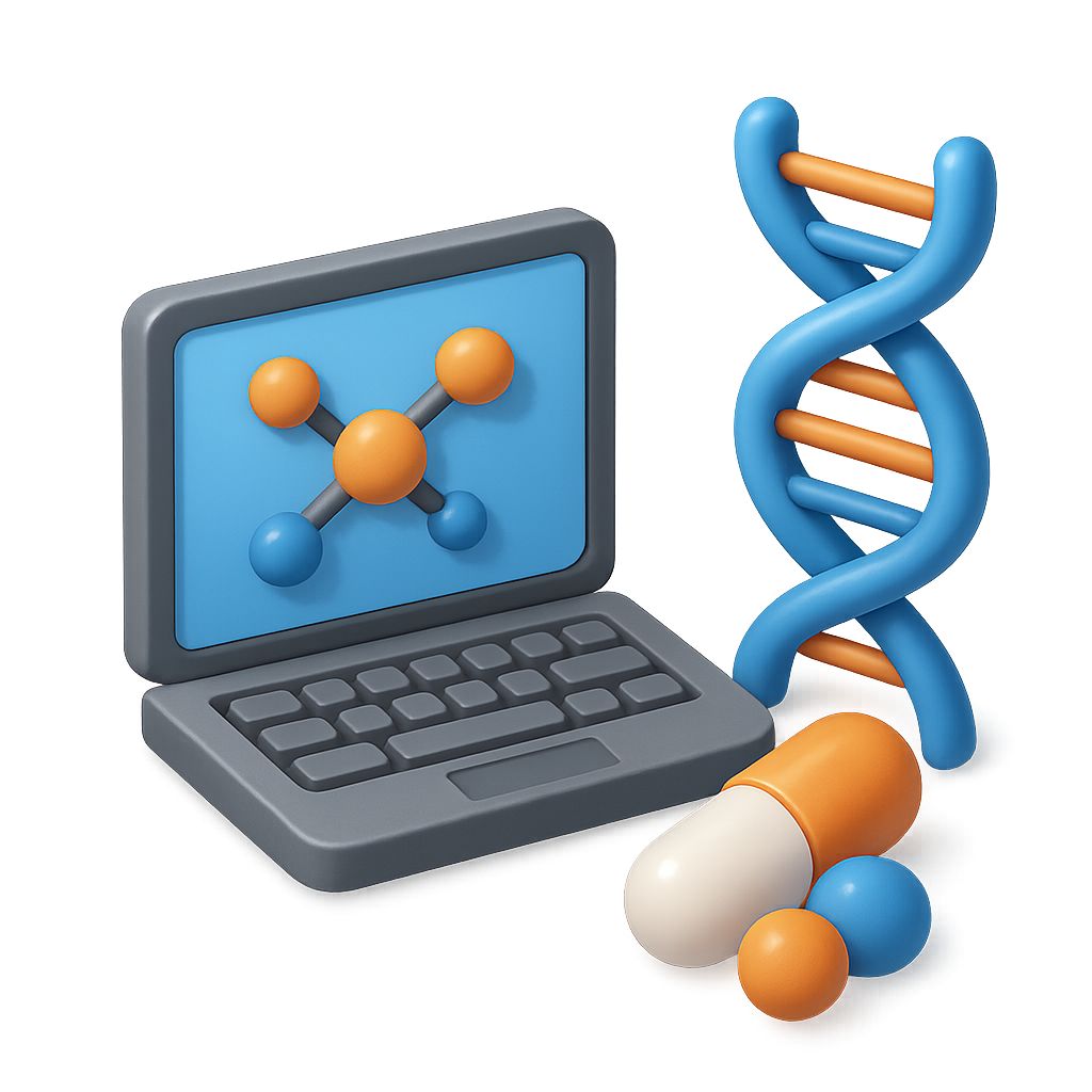 3D Icon Representing Drug Discovery and AI Technology