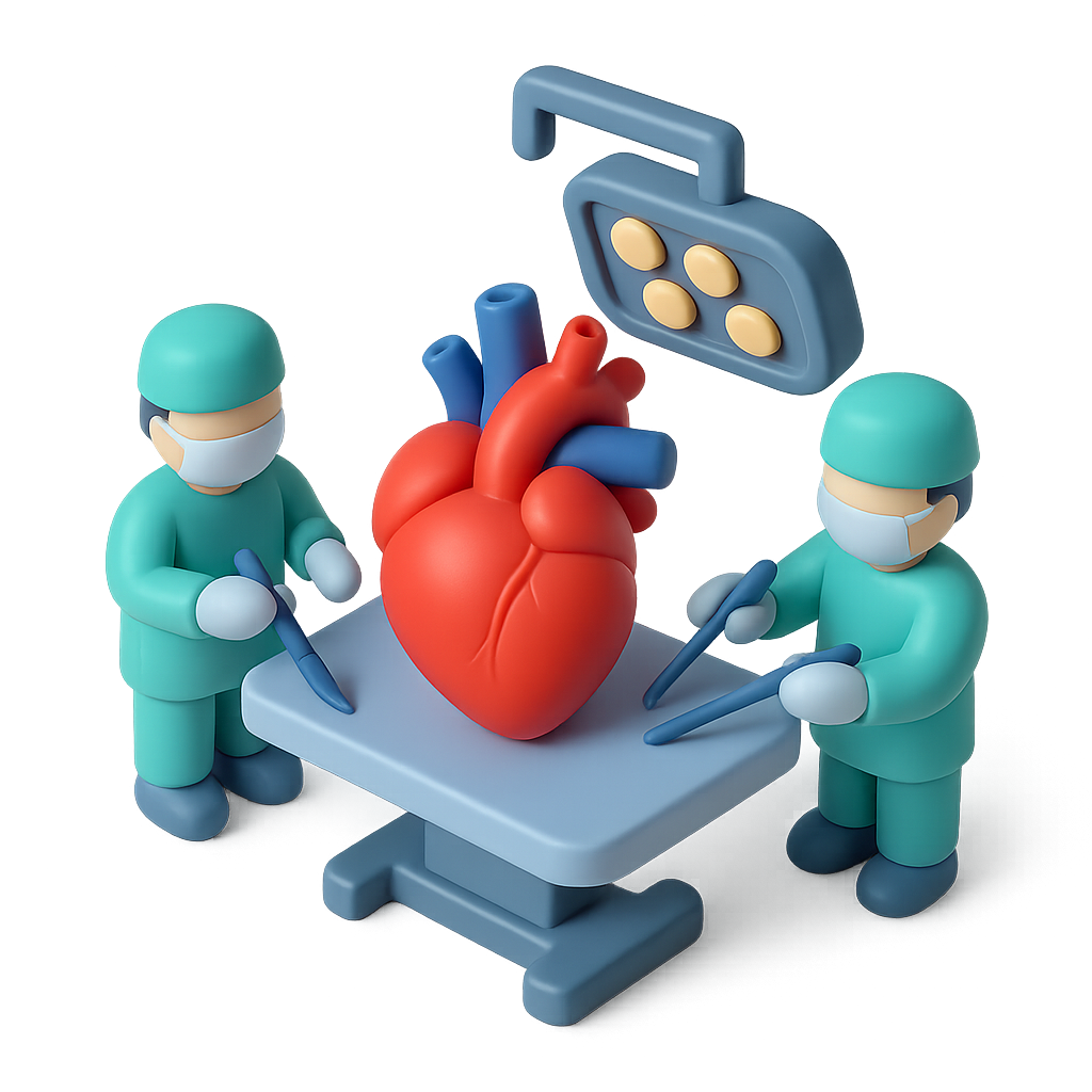 3D Heart Surgery Icon with Medical Team and Equipment