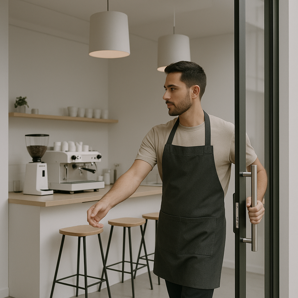 Barista Opening a Modern CafΓ© in the Morning
