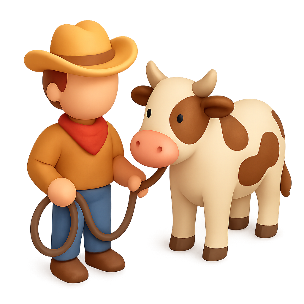 3D Animal Wrangler Icon with Cow in Volumetric Style