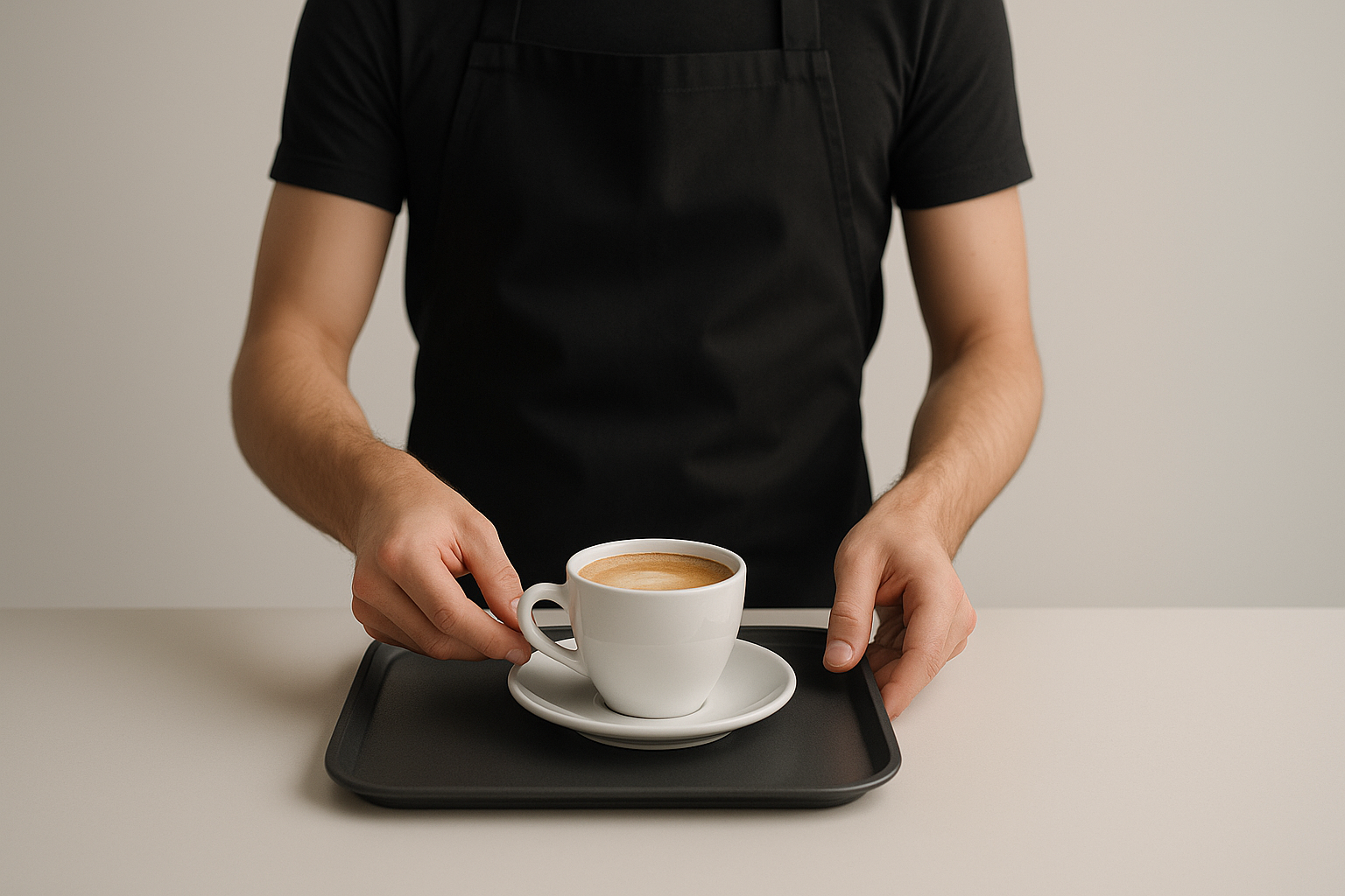 Barista Serving Coffee on a Stylish Tray in Minimalist Style