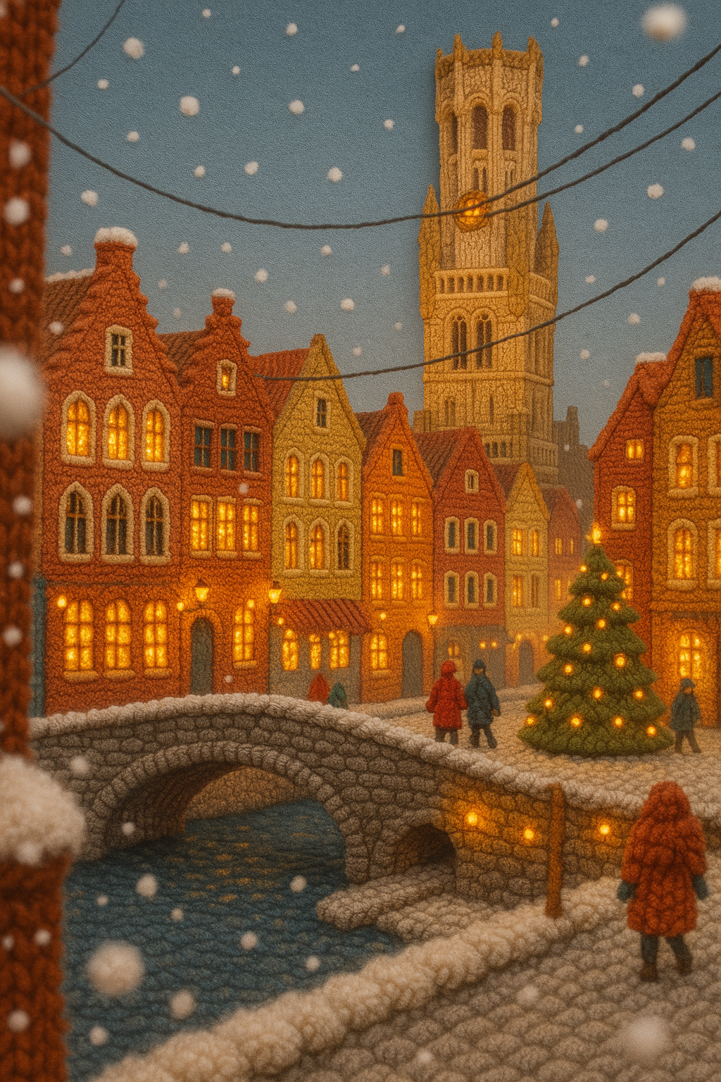Winter Scene in Bruges with Cozy Yarn Aesthetic