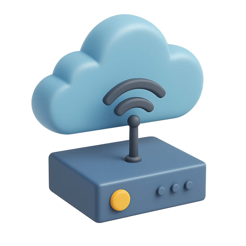 /Collection: /by davooda/Type: PNG/A modern 3D cloud icon featuring a stylized cloud with a wireless signal, set on a base. The design showcases a volumetric, isometric perspective and a transparent background.