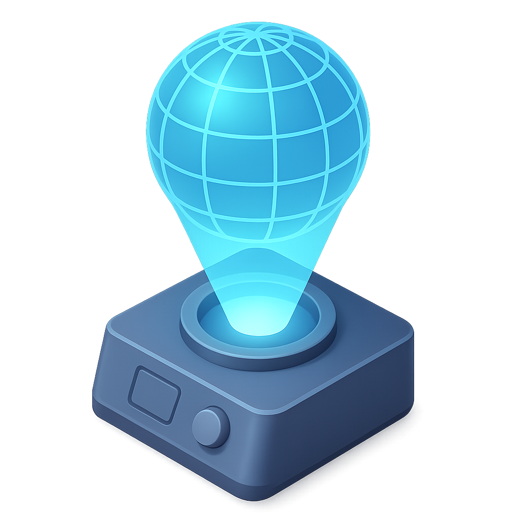 A visually striking 3D hologram projection display featuring a globe design. The hologram emanates from a sleek base, showcasing a futuristic and technological aesthetic.