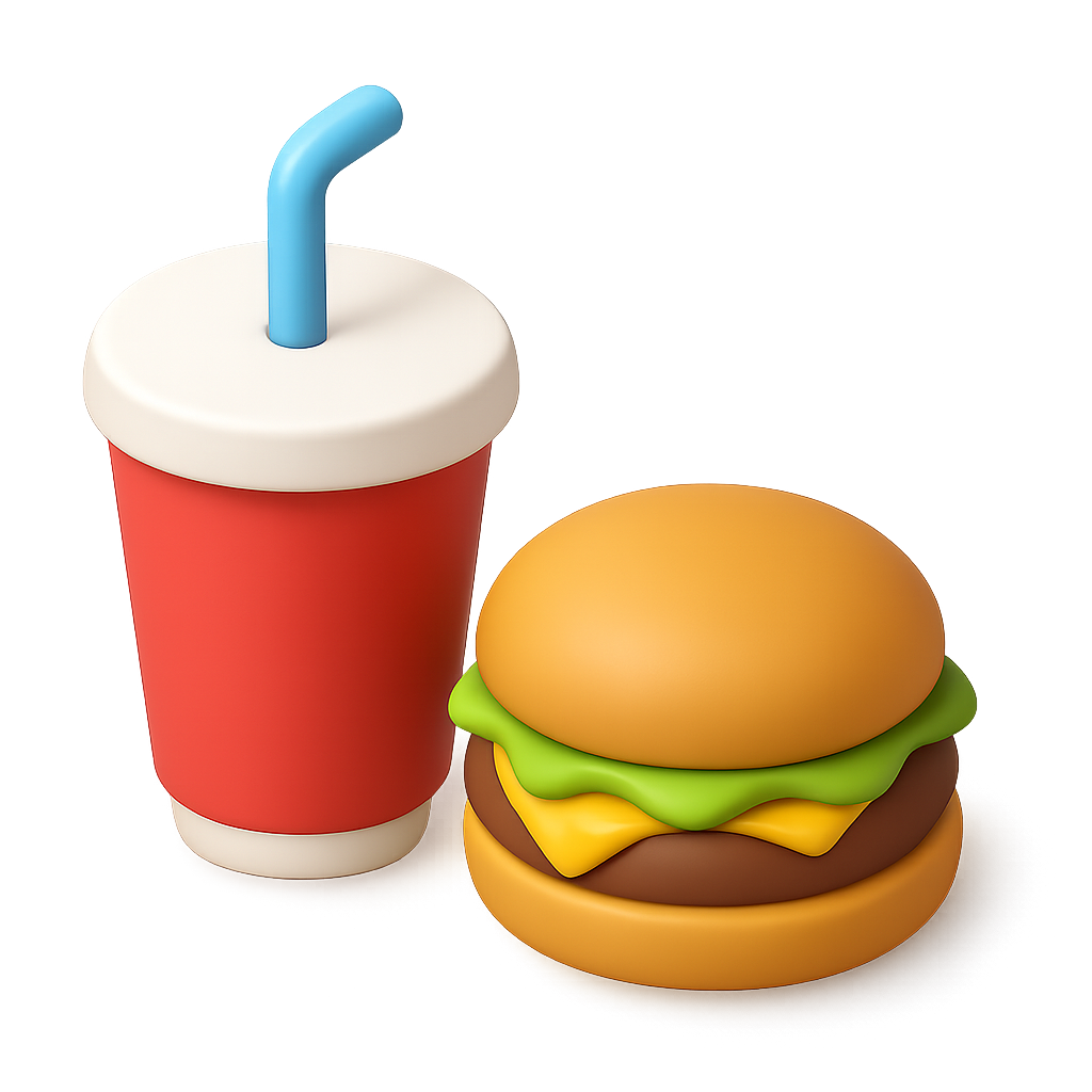 Colorful 3D Drink and Hamburger Icon for Fast Food