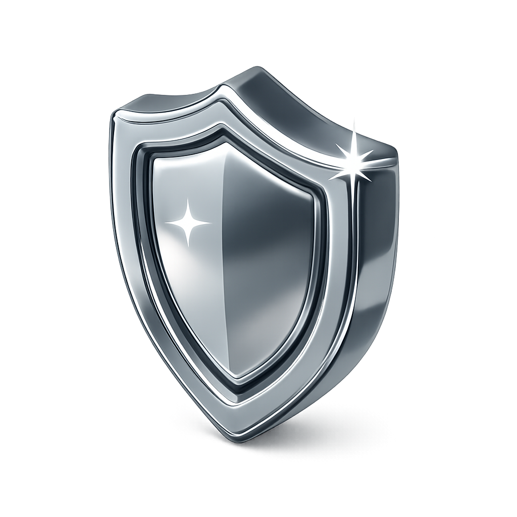 Stylish 3D Chrome Shield Icon with Reflective Finish