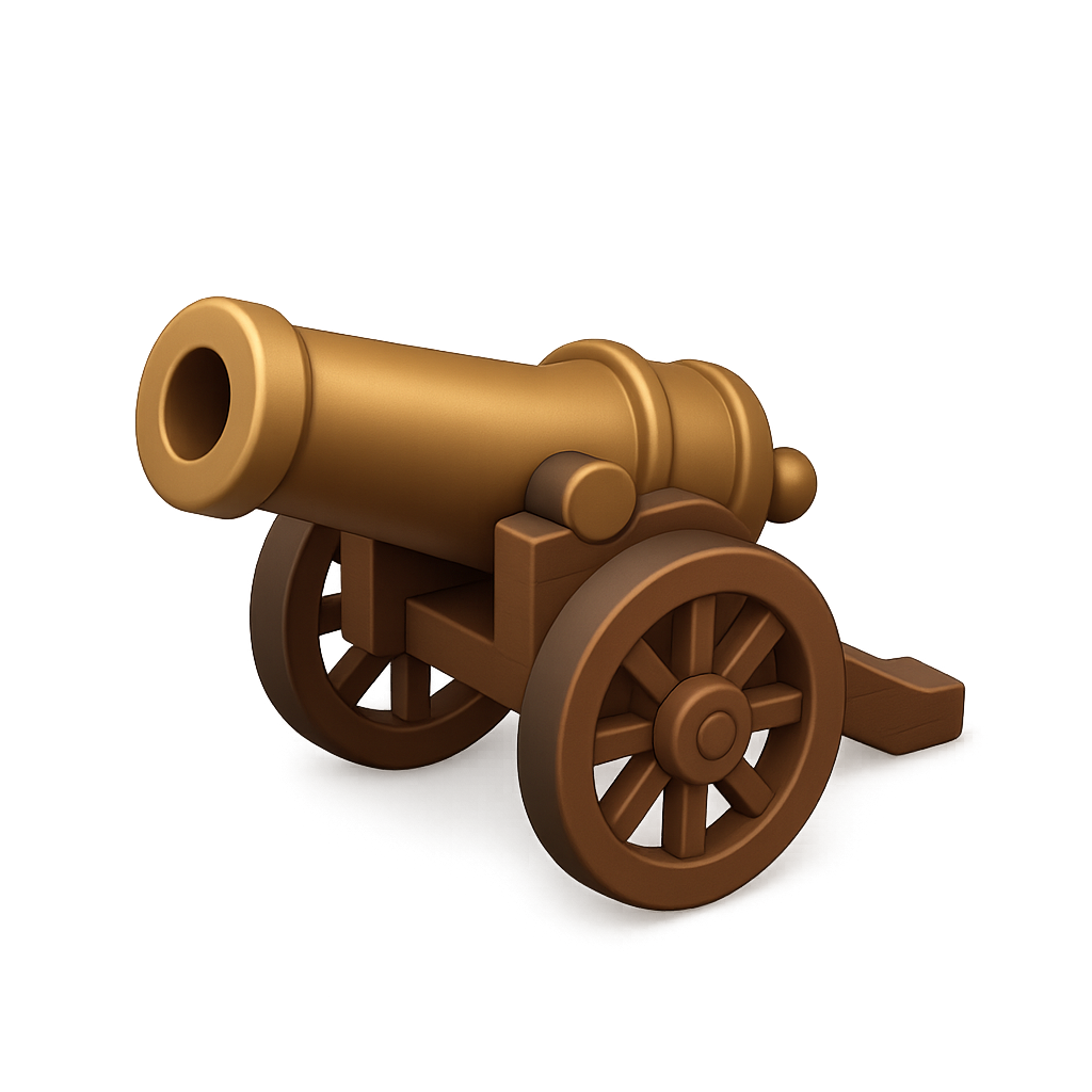 Stylized 3D Napoleonic Cannon Icon with Isometric View