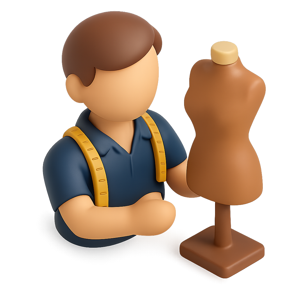 Stylized 3D Tailor Icon with Mannequin Representation