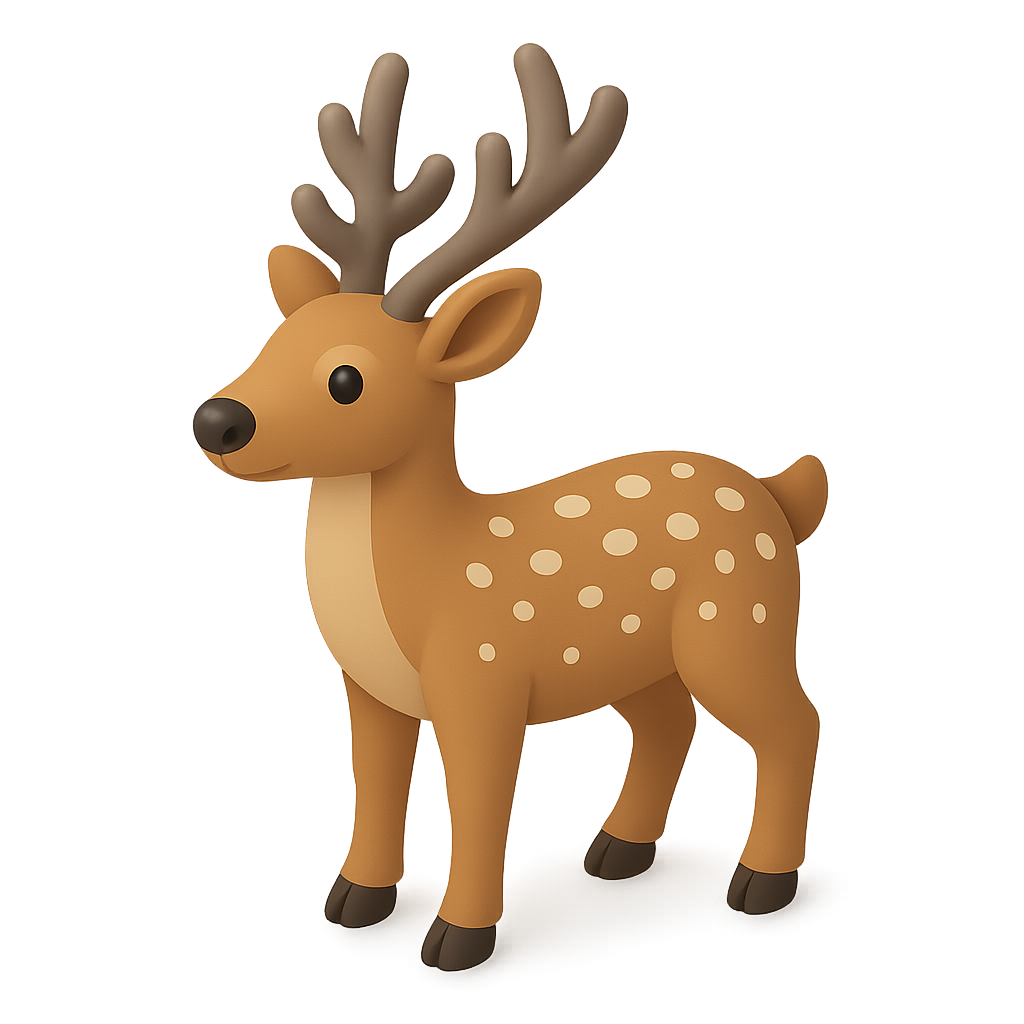 Stylized 3D Deer Icon with Antlers and Spots