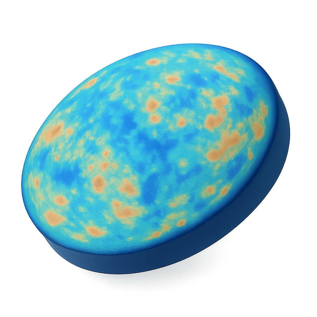 /Collection: /by davooda/Type: PNG/A visually striking 3D icon representing the cosmic microwave background, featuring vibrant blue and orange patterns on a smooth surface, viewed in isometric perspective.