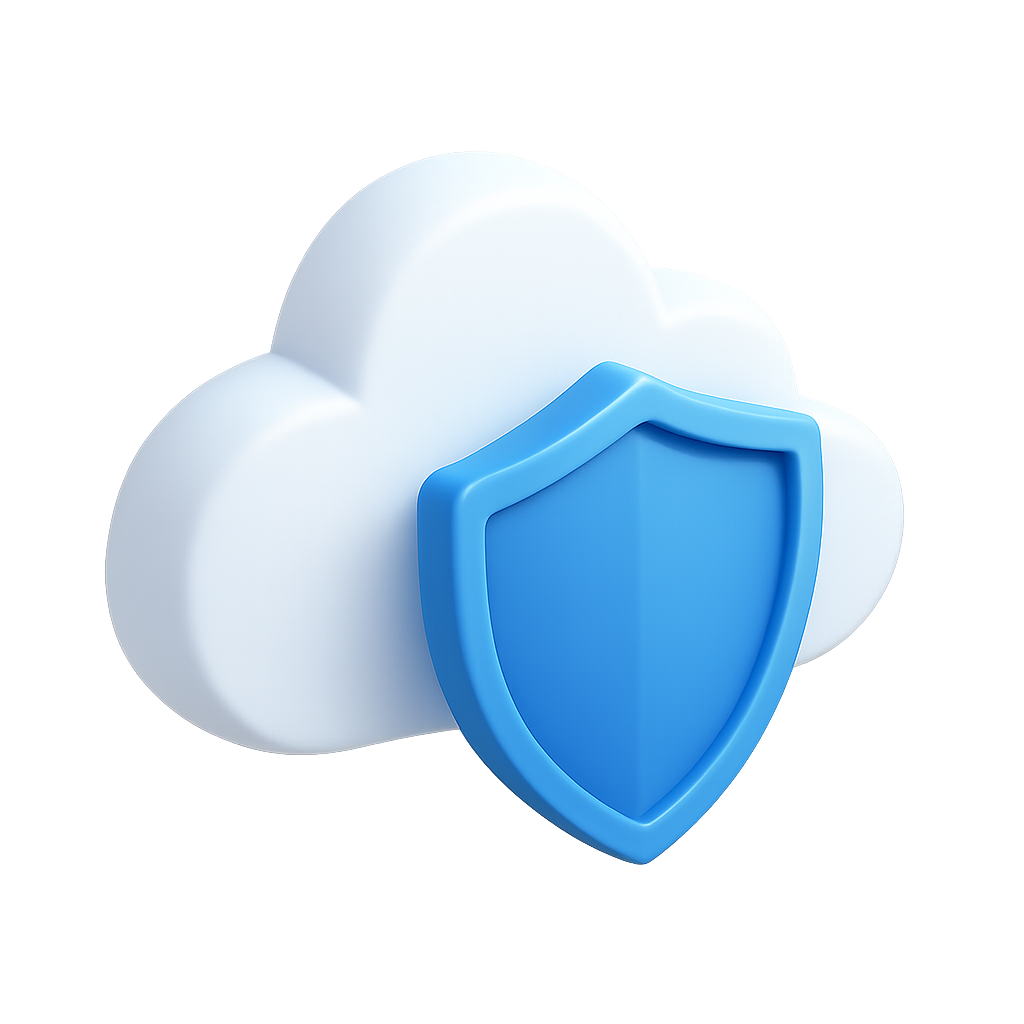 3D Cloud and Shield Icon Representing Cybersecurity