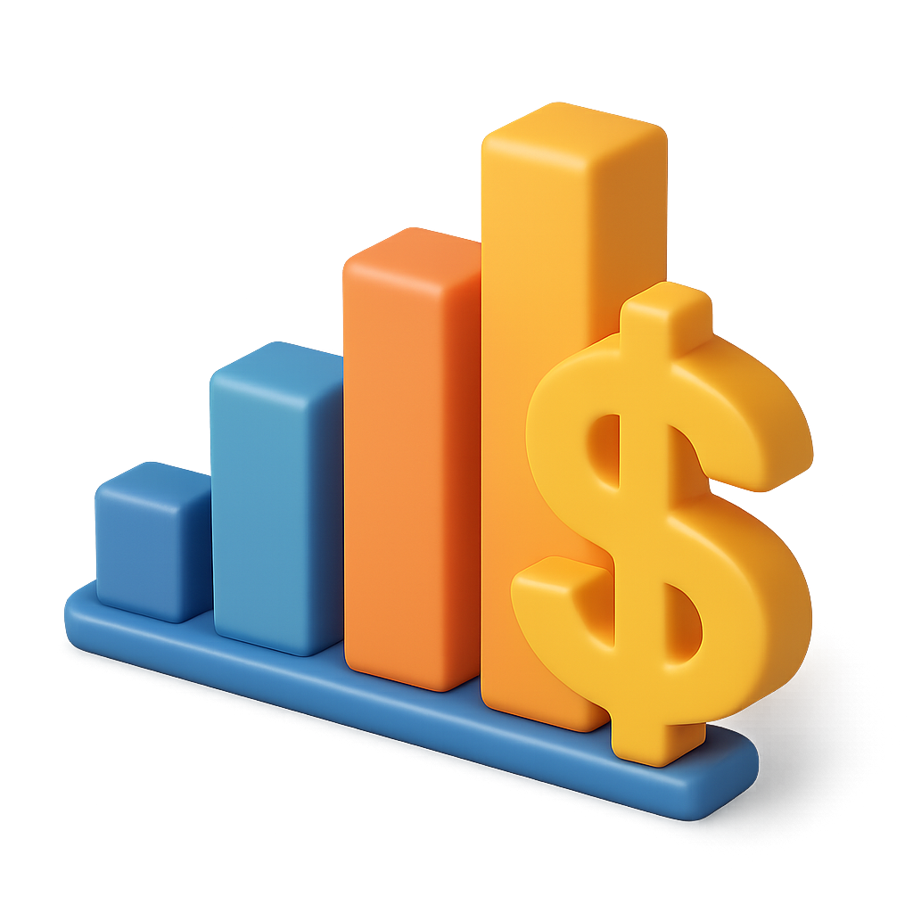 Colorful 3D Dollar Bar Graph Icon in Isometric View