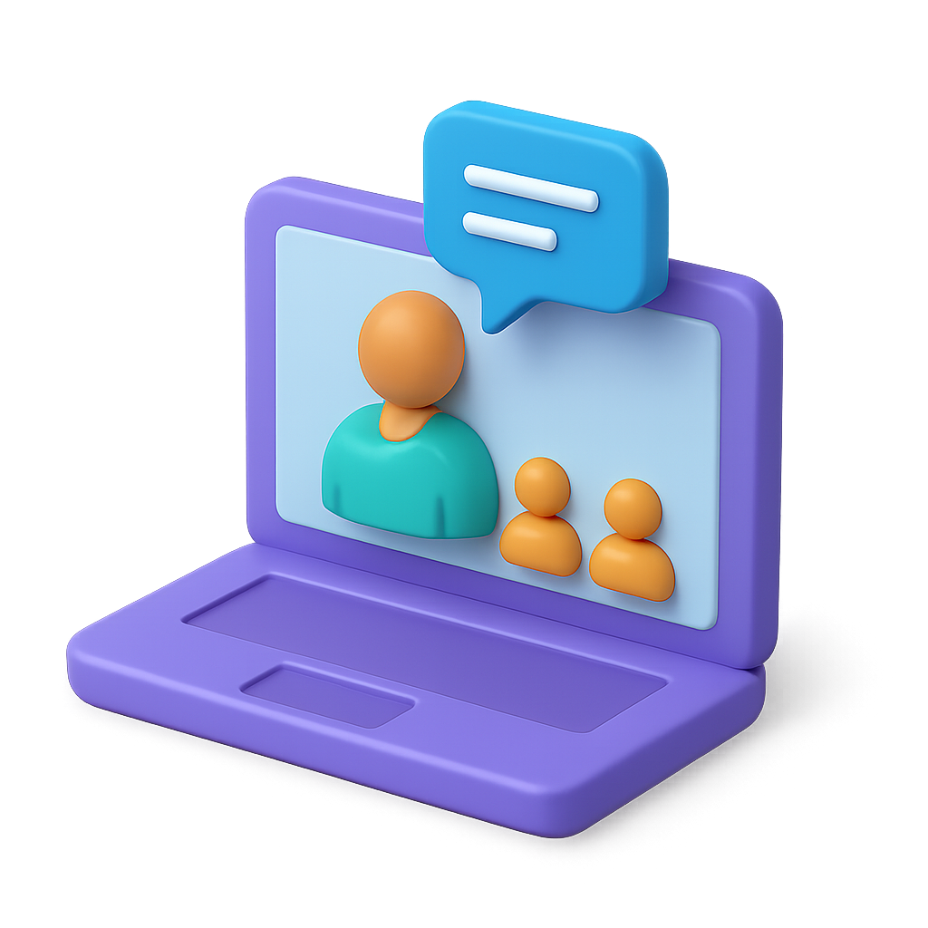Stylish 3D Laptop Icon with Speech Bubble Design
