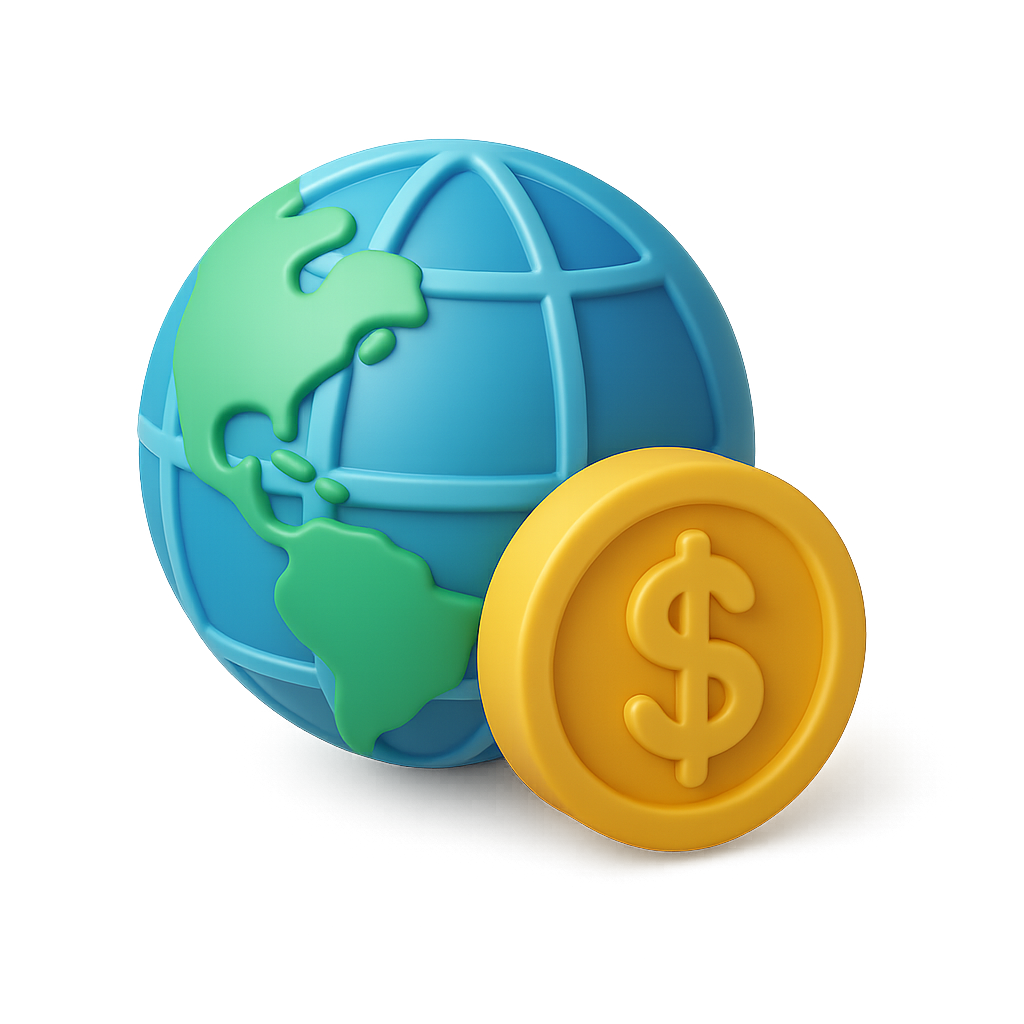 3D Globe and Dollar Sign Icon in Isometric View