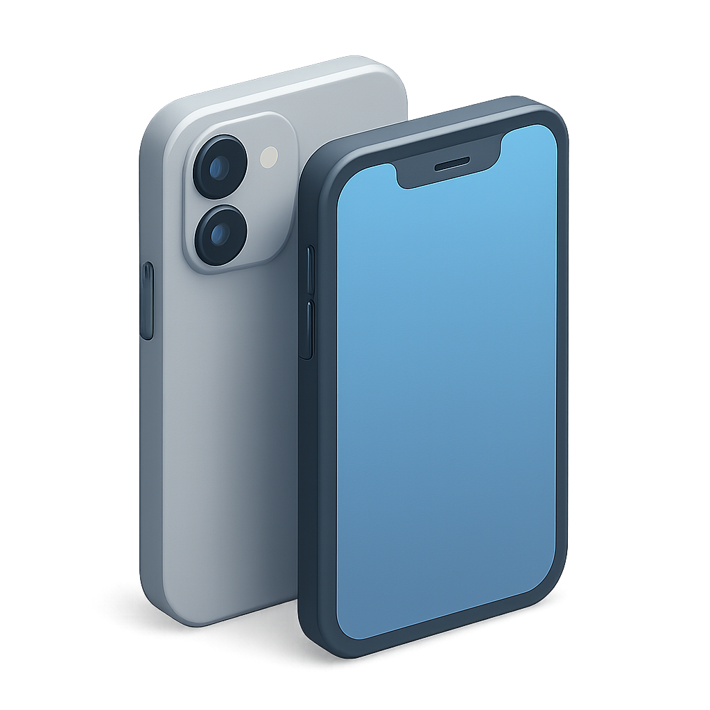 /Collection: /by davooda/Type: PNG/Two sleek 3D smartphone icons displayed in a three-quarter view. The design features a modern aesthetic with a transparent background, emphasizing their volumetric shape.
