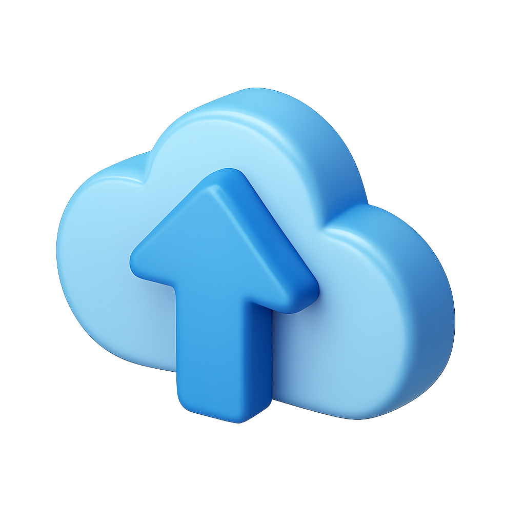 3D Cloud Icon with Upward Arrow Design