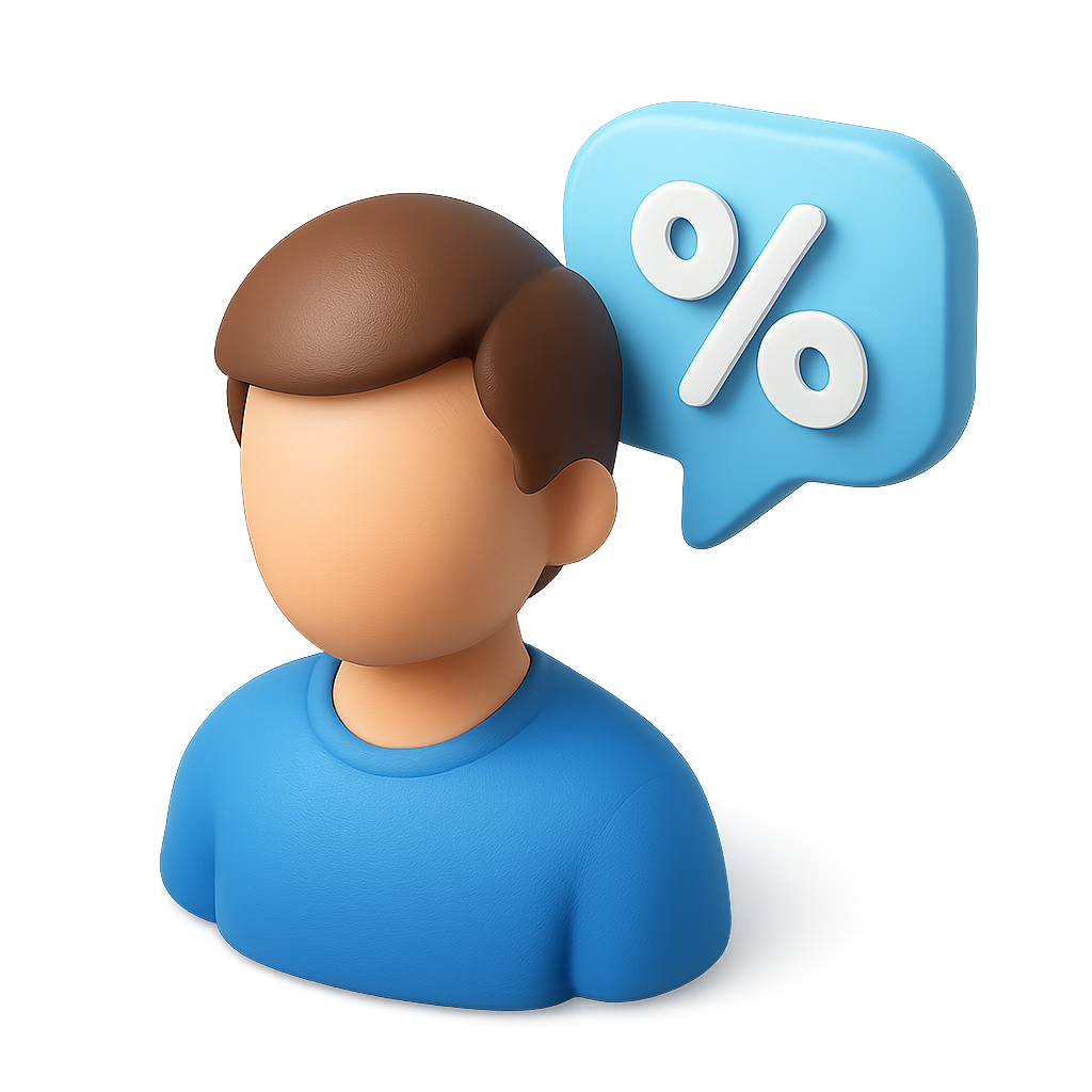 3D Chat Icon Featuring Person and Percentage Symbol