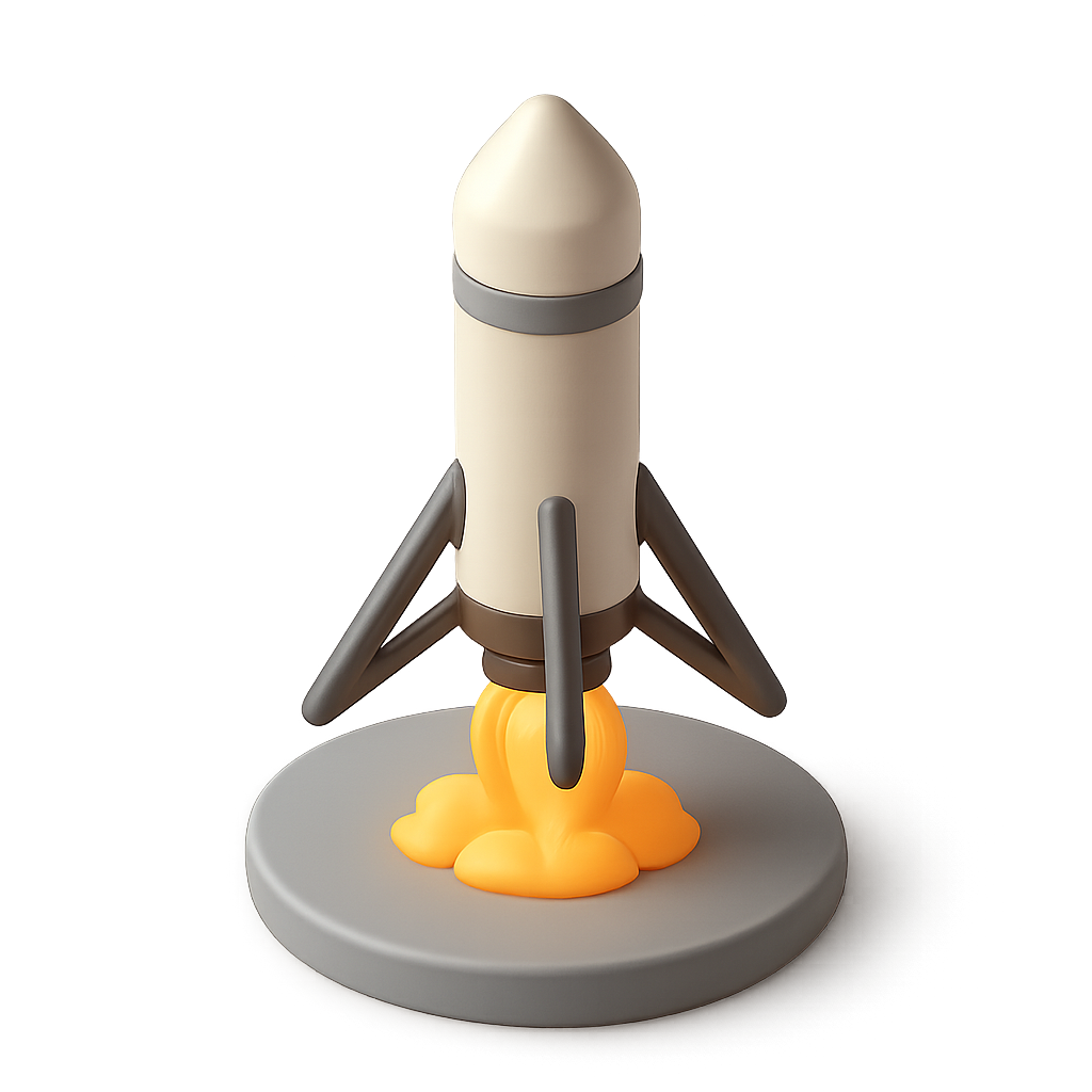 3D Icon of a Reusable Rocket Landing with Volumetric Design