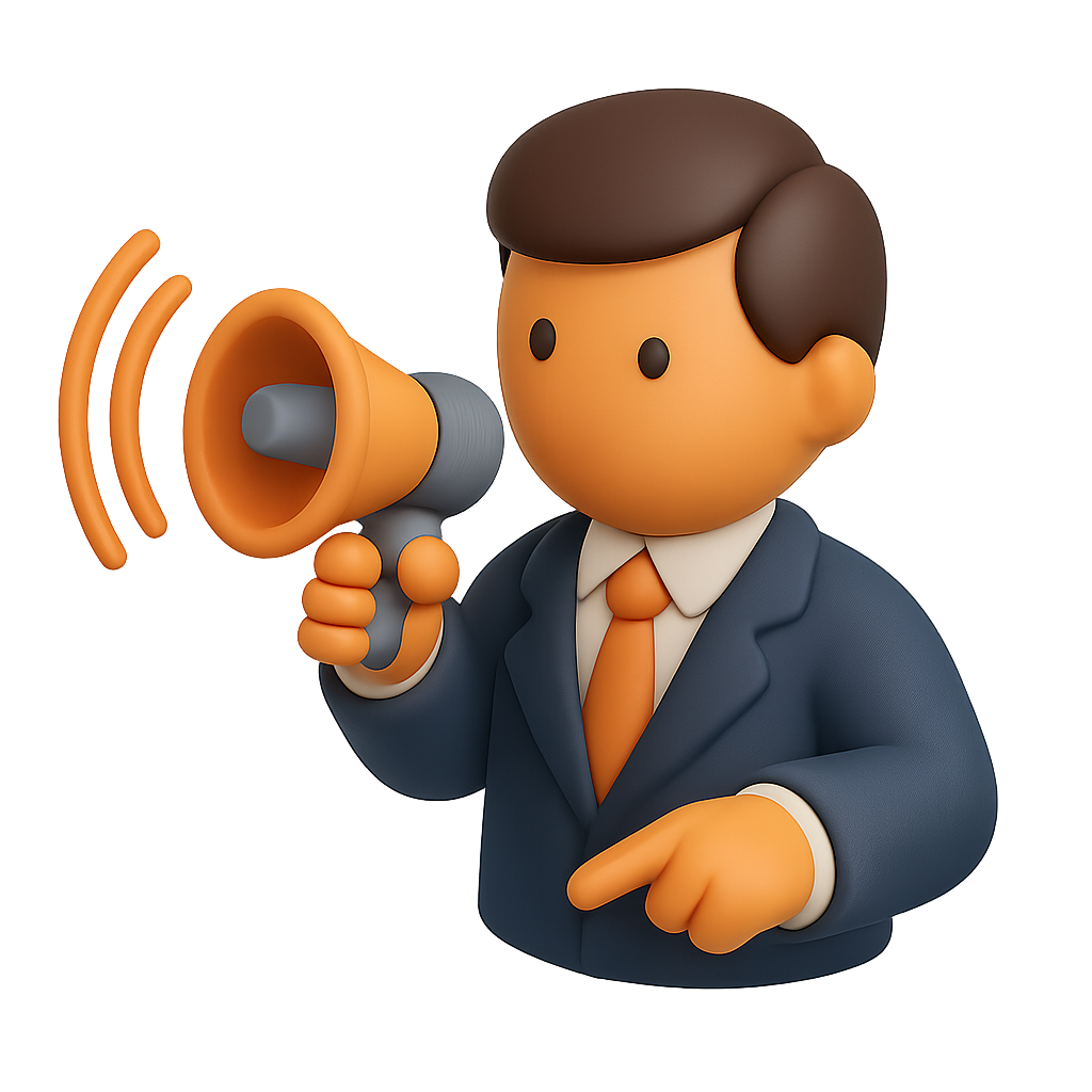3D Icon of a Boss Giving Orders with Megaphone