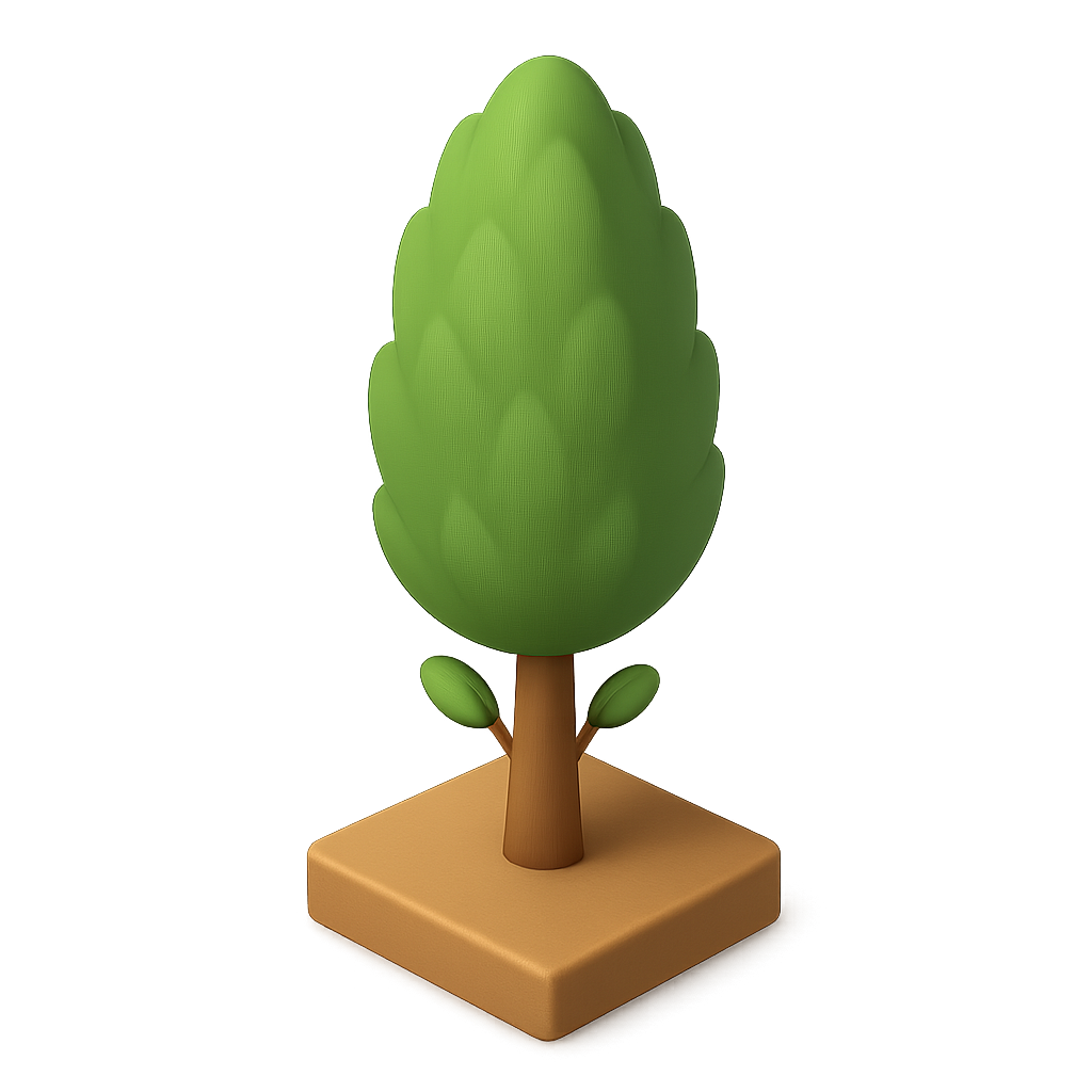 Stylized 3D Poplar Tree Icon with Isometric View