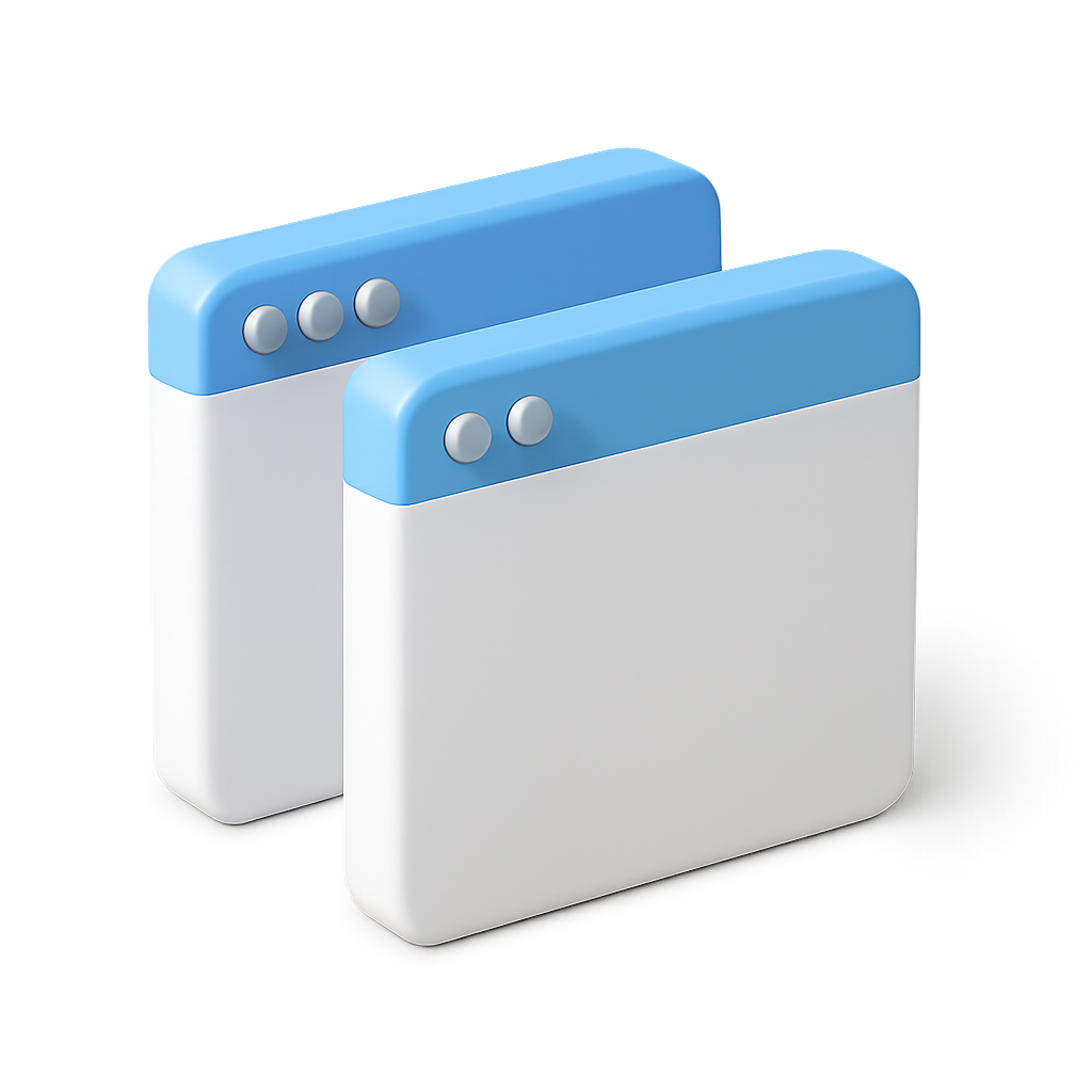Stylish 3D Icon of Overlapping Windows in Isometric View