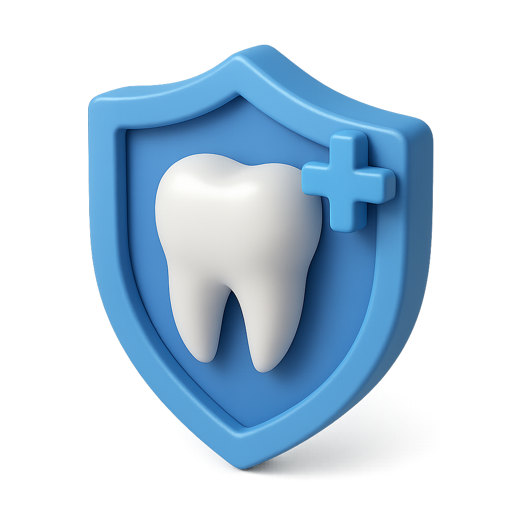 3D Dental Icon Featuring Tooth, Shield, and Toothbrush