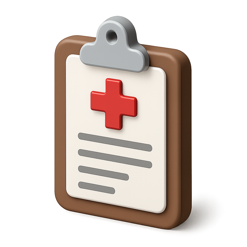 /Collection: /by davooda/Type: PNG/A 3D isometric representation of a medical clipboard featuring a red cross emblem. The clipboard has a brown frame, white chart area, and is designed with a transparent background.