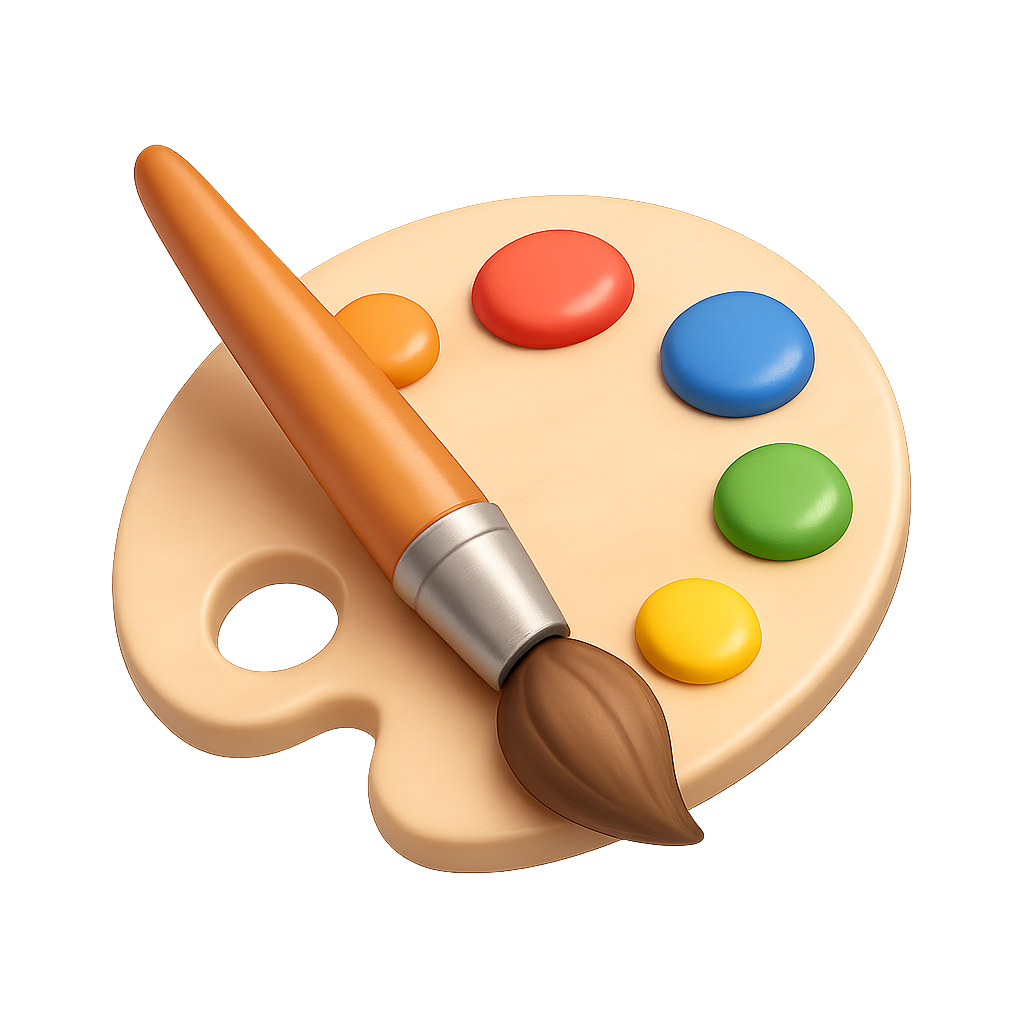 Colorful 3D Art Supplies: Palette and Brush Icon