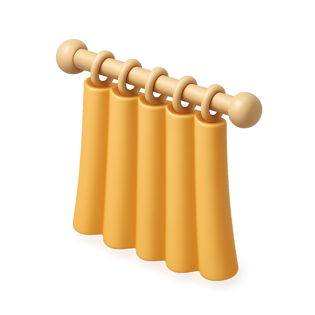 Stylish 3D Icon of Shower Curtain with Rings