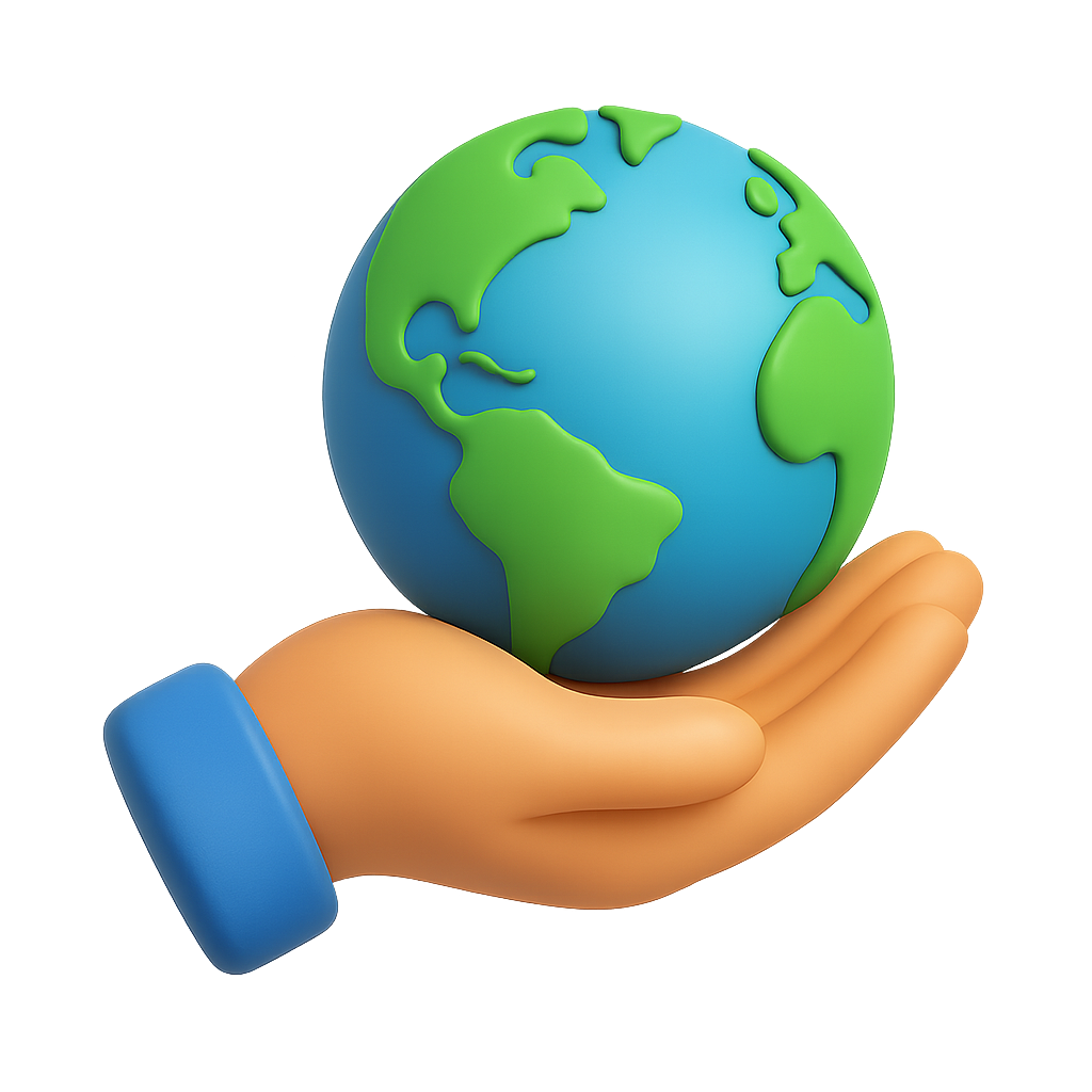 A colorful 3D globe being held in a stylized hand. The globe features detailed continents and oceans, presented in a three-quarter isometric view against a soft gradient background.