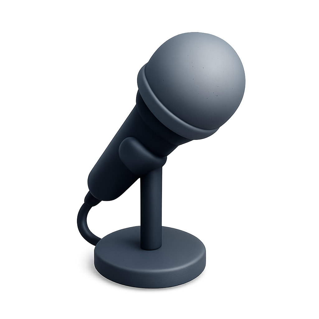 /Collection: /by davooda/Type: PNG/A sleek, isometric 3D microphone icon rendered in a three-quarter view. The design features a smooth, volumetric appearance and a transparent background, ideal for public speaking themes.