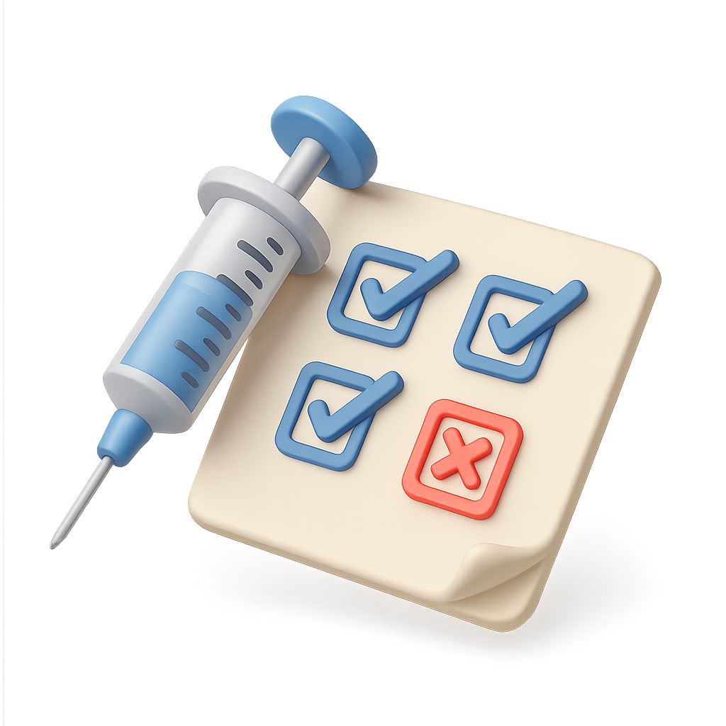 /Collection: /by davooda/Type: PNG/A visually appealing 3D icon of a syringe next to a checklist with ticked boxes, all designed in an isometric perspective. The syringe and checklist are rendered with a clean, modern aesthetic.