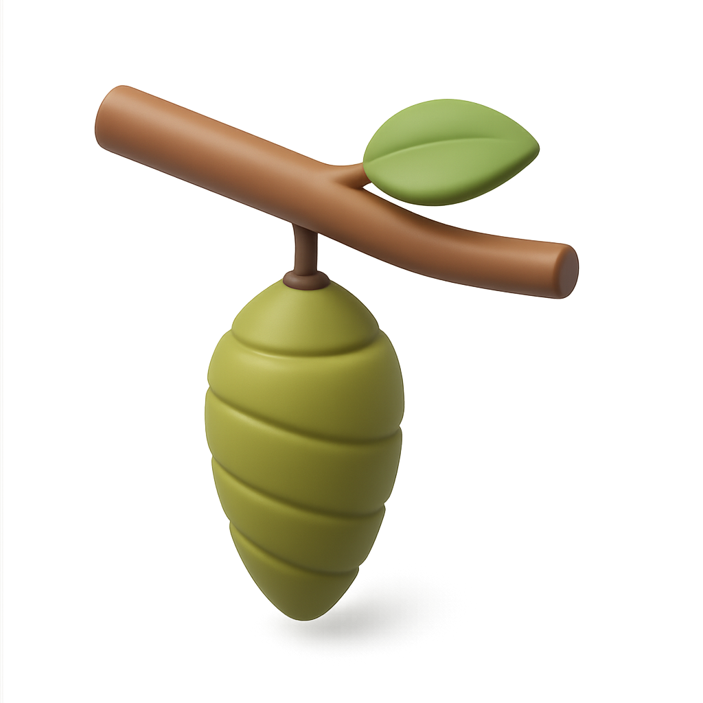 Stylized 3D Cocoon Icon on Branch with Leaf