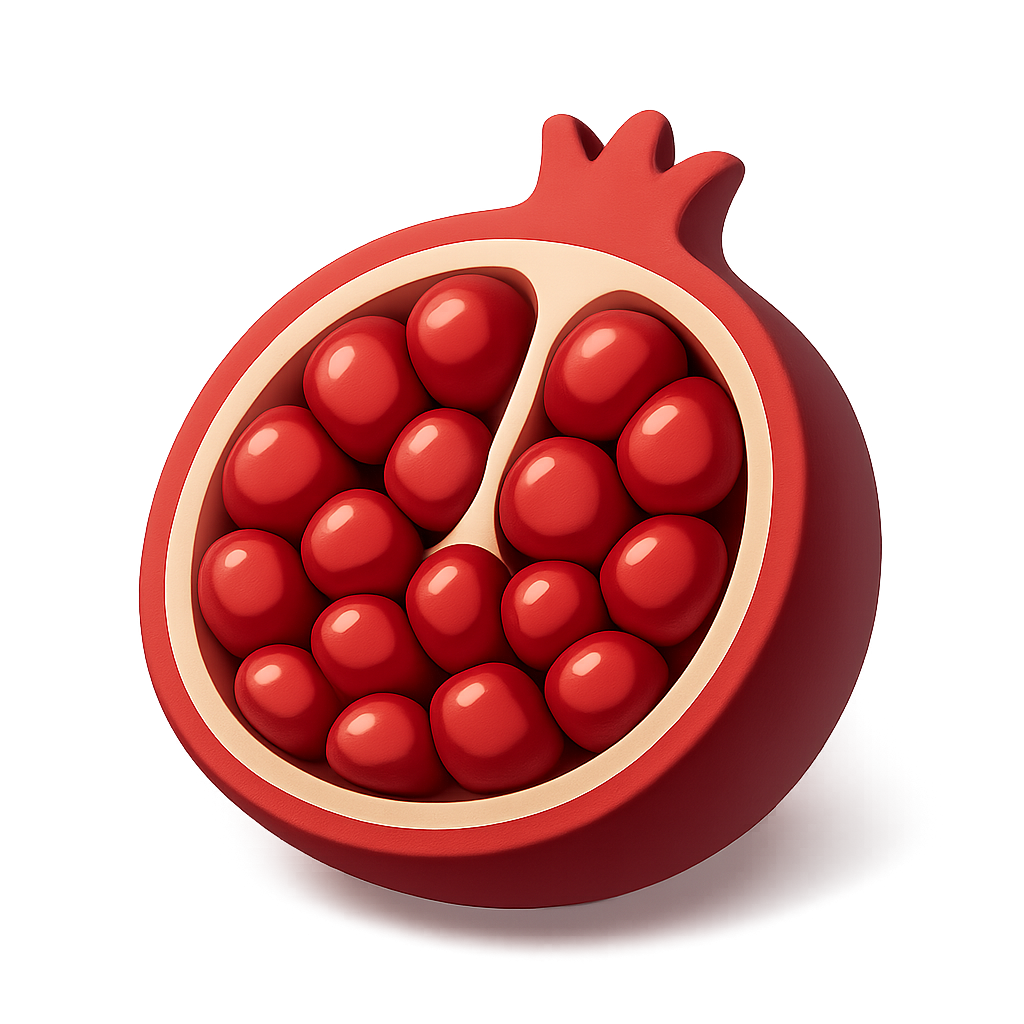 3D Pomegranate Icon with Ruby Seeds in Isometric View