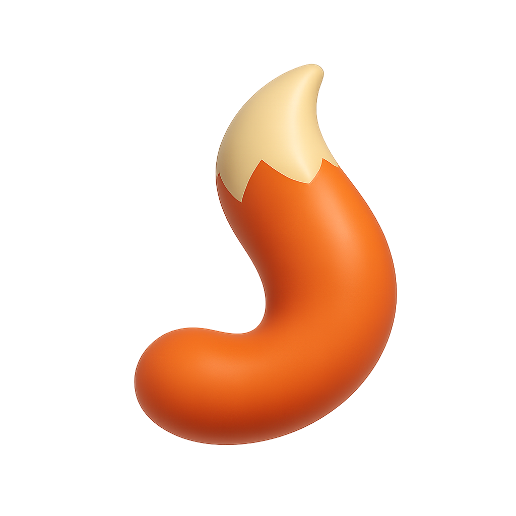 /Collection: /by davooda/Type: PNG/A stylized 3D representation of a fox's bushy tail, featuring a vibrant orange hue with a cream-colored tip. The icon is designed with a transparent background and showcases a three-quarter view.