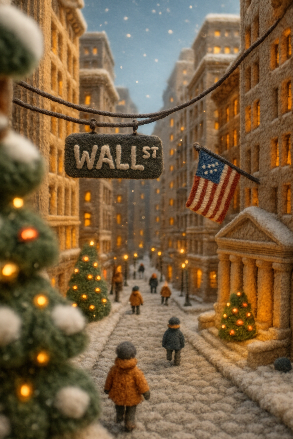 Winter Wonderland on Wall Street in 3D Yarn Art