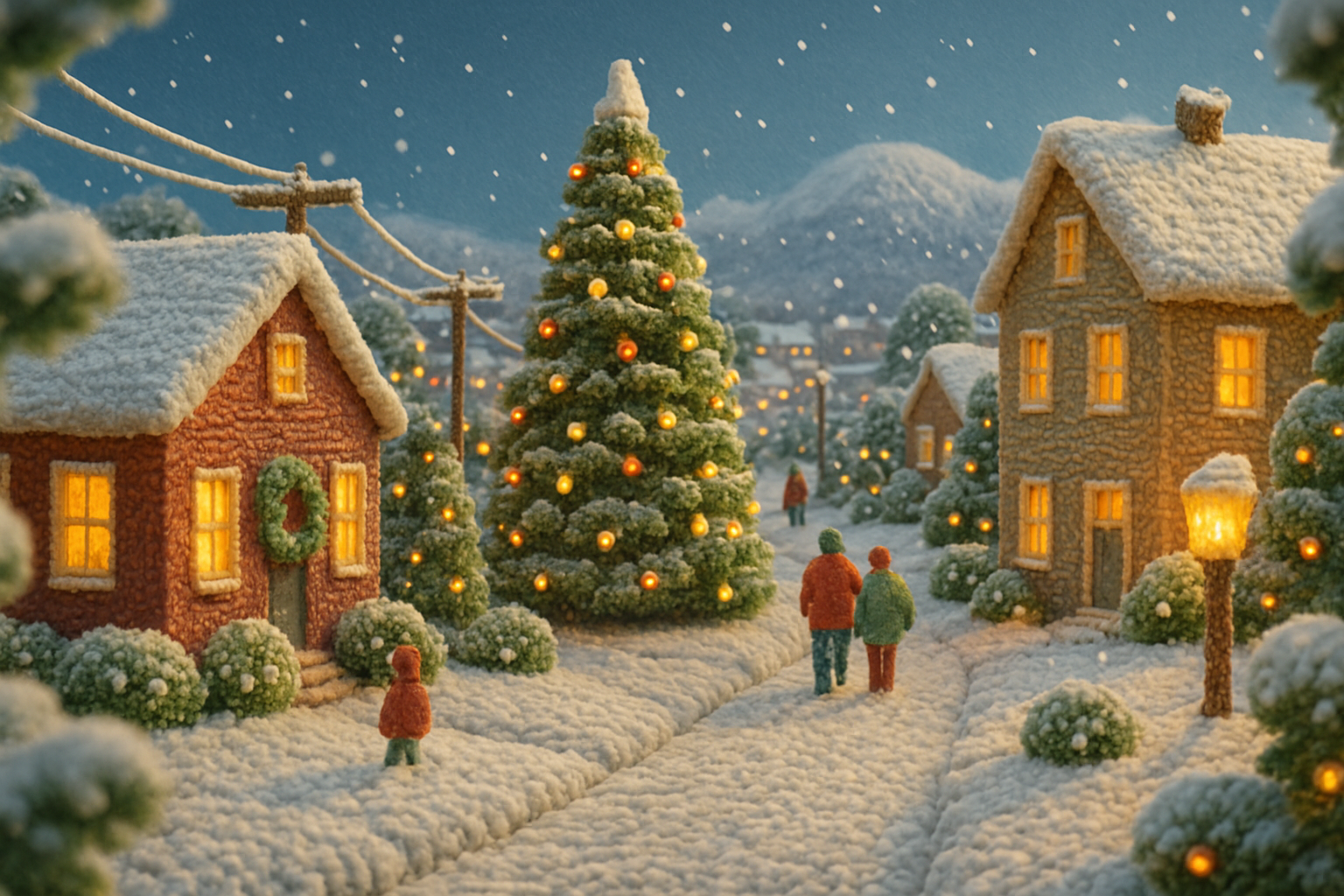 Cozy Knitted Winter Landscape Scene with Holiday Charm