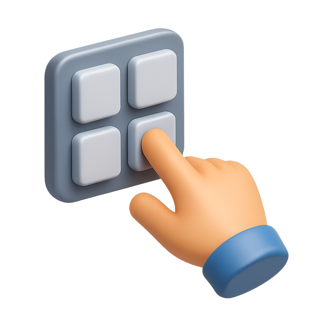 3D Icon of a Hand Pressing Buttons in Isometric View