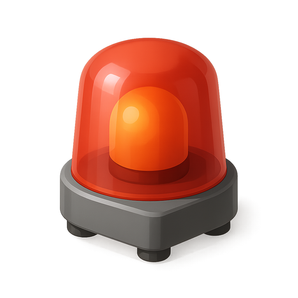 /Collection: /by davooda/Type: PNG/A 3D rendering of a siren or alarm device viewed from a three-quarter angle. The icon features a bright orange dome atop a gray base, set against a soft gradient background.