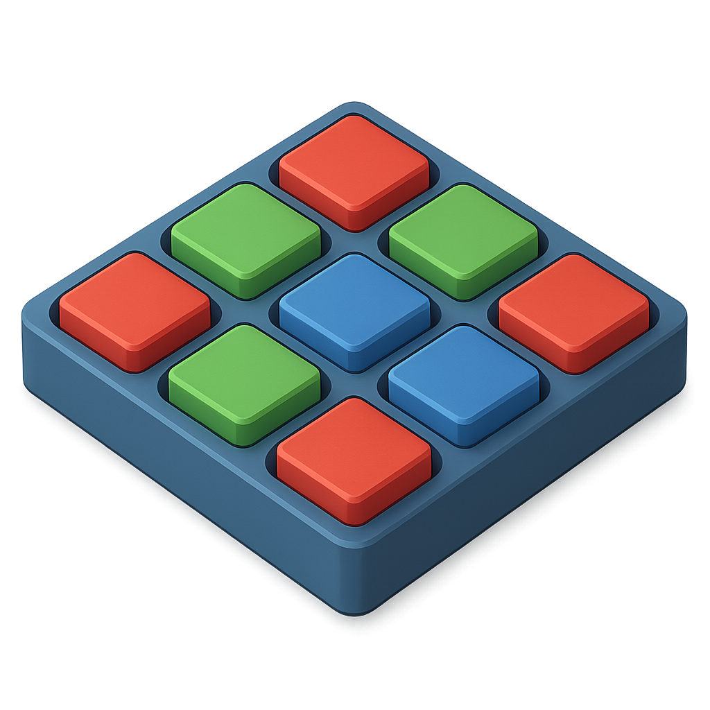 /Collection: /by davooda/Type: PNG/A visually striking 3D icon featuring a grid of colorful microLED pixels. The design showcases red, green, blue, and other colored squares arranged in a three-quarter isometric view, emphasizing depth and dimension.