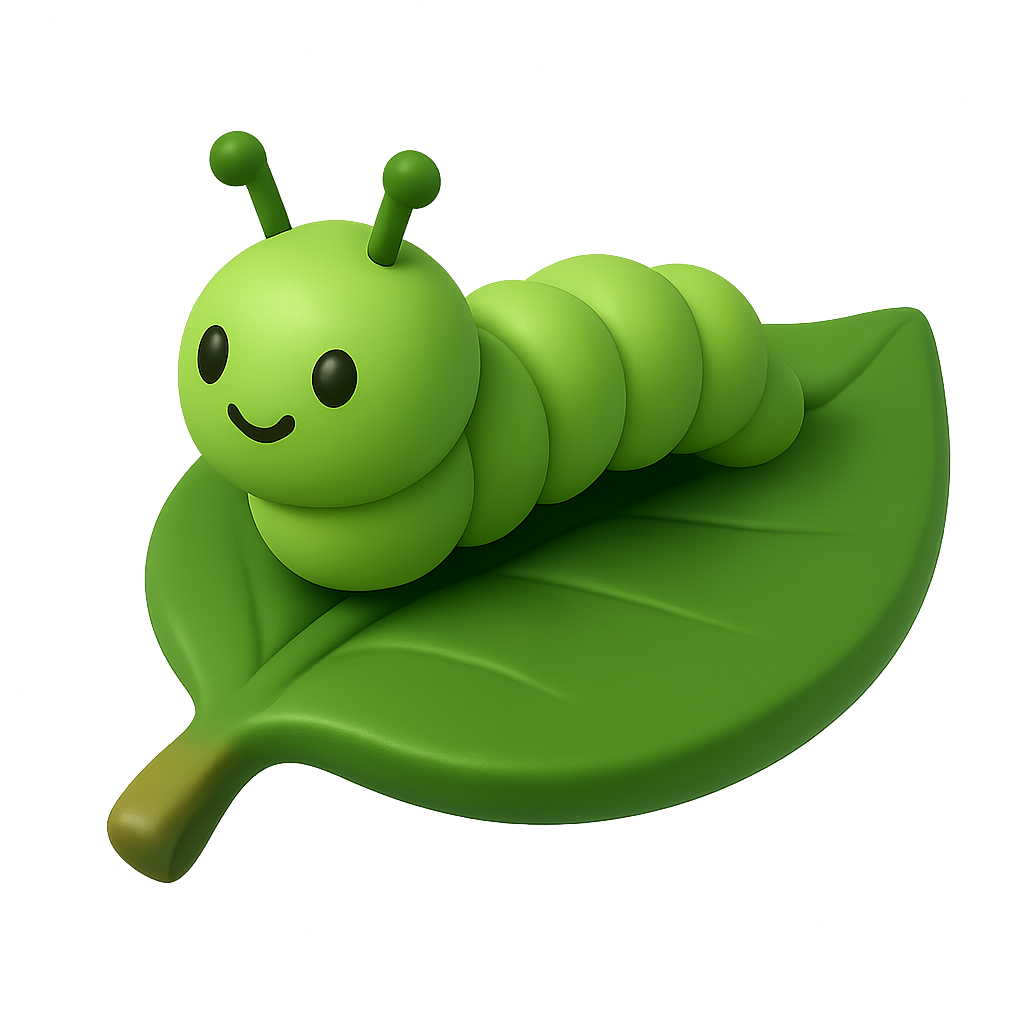 Cute 3D Caterpillar Icon on Leaf in Isometric Style