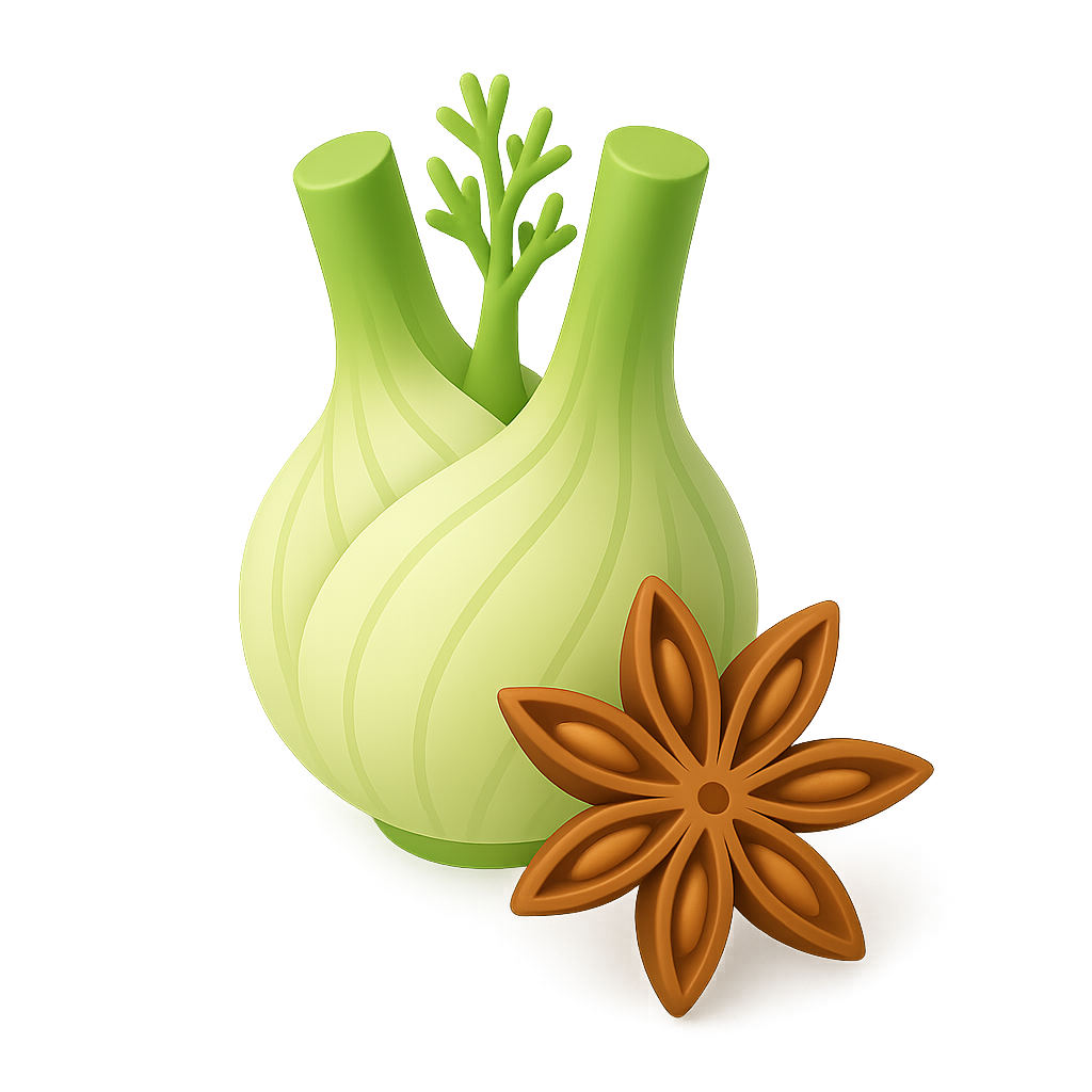 Stylized 3D Fennel and Anise Icon with Volumetric Design