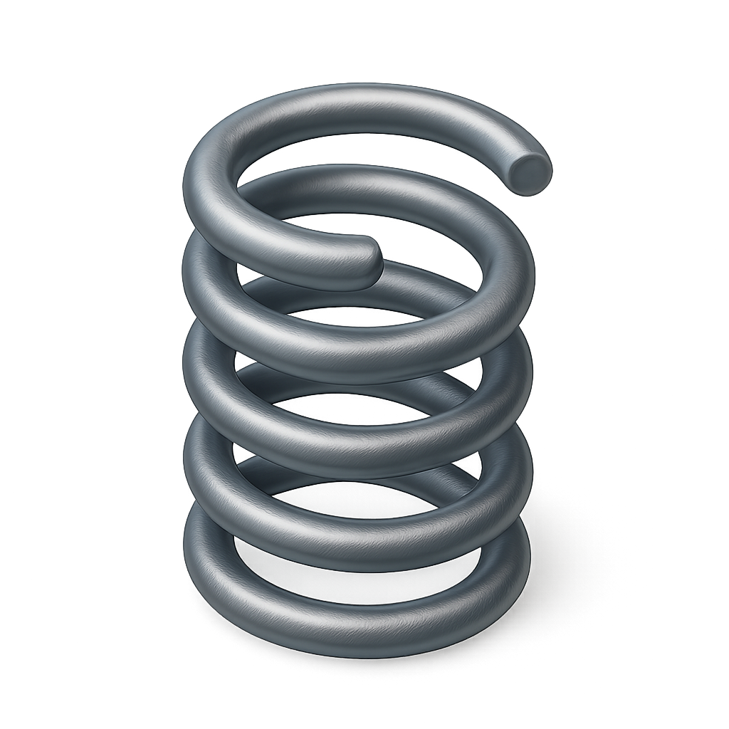 /Collection: /by davooda/Type: PNG/A visually striking 3D icon of a coiled metal spring, presented in a three-quarter view. The spring features a smooth metallic texture and a transparent background, enhancing its volumetric appearance.
